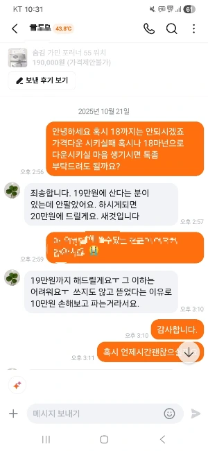 “혹시 19만원 가능할까요?”