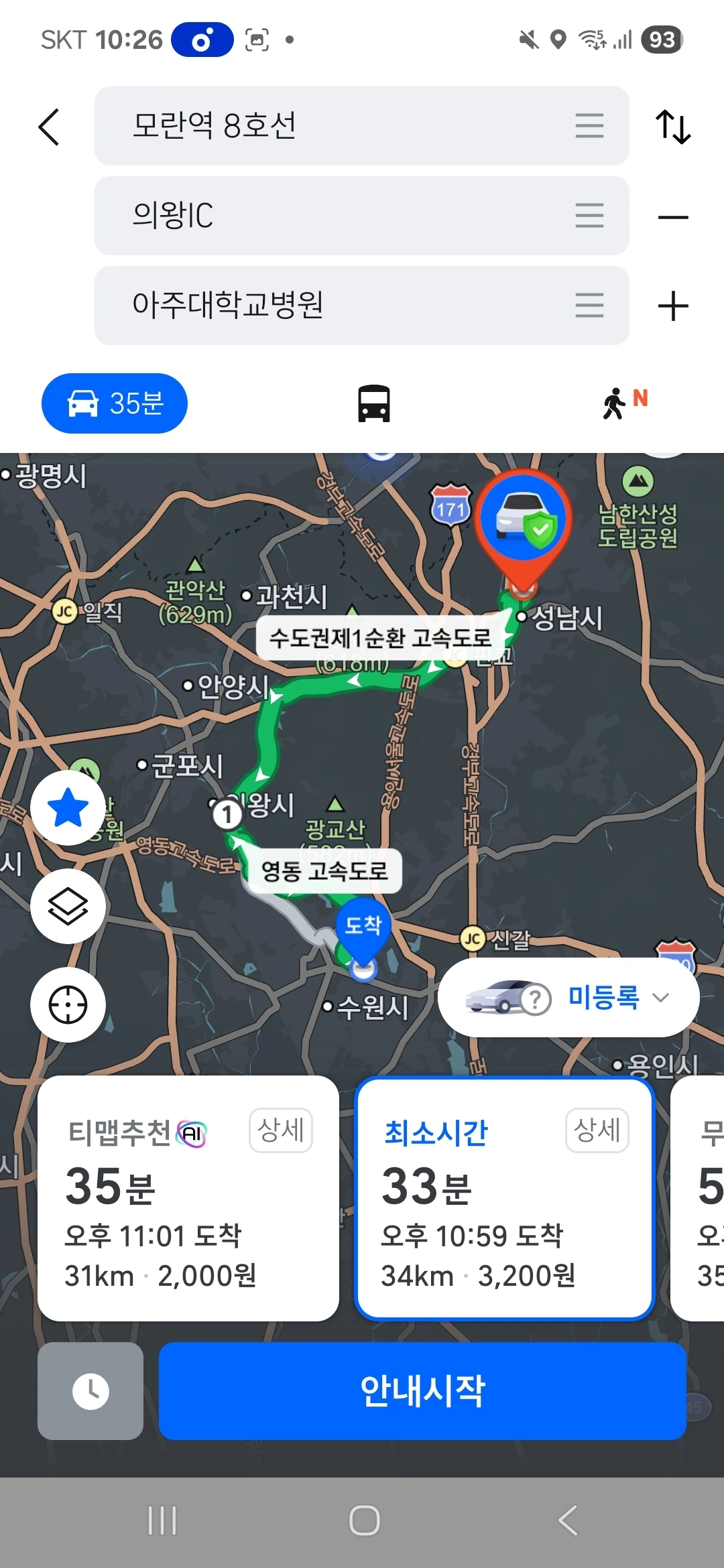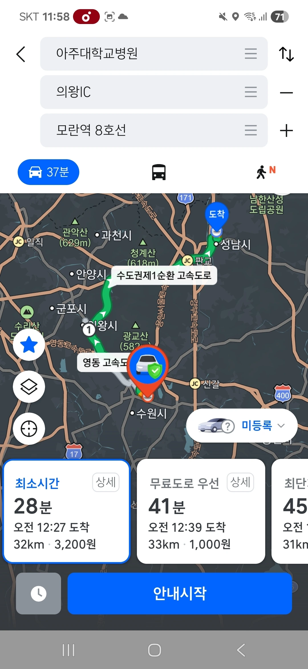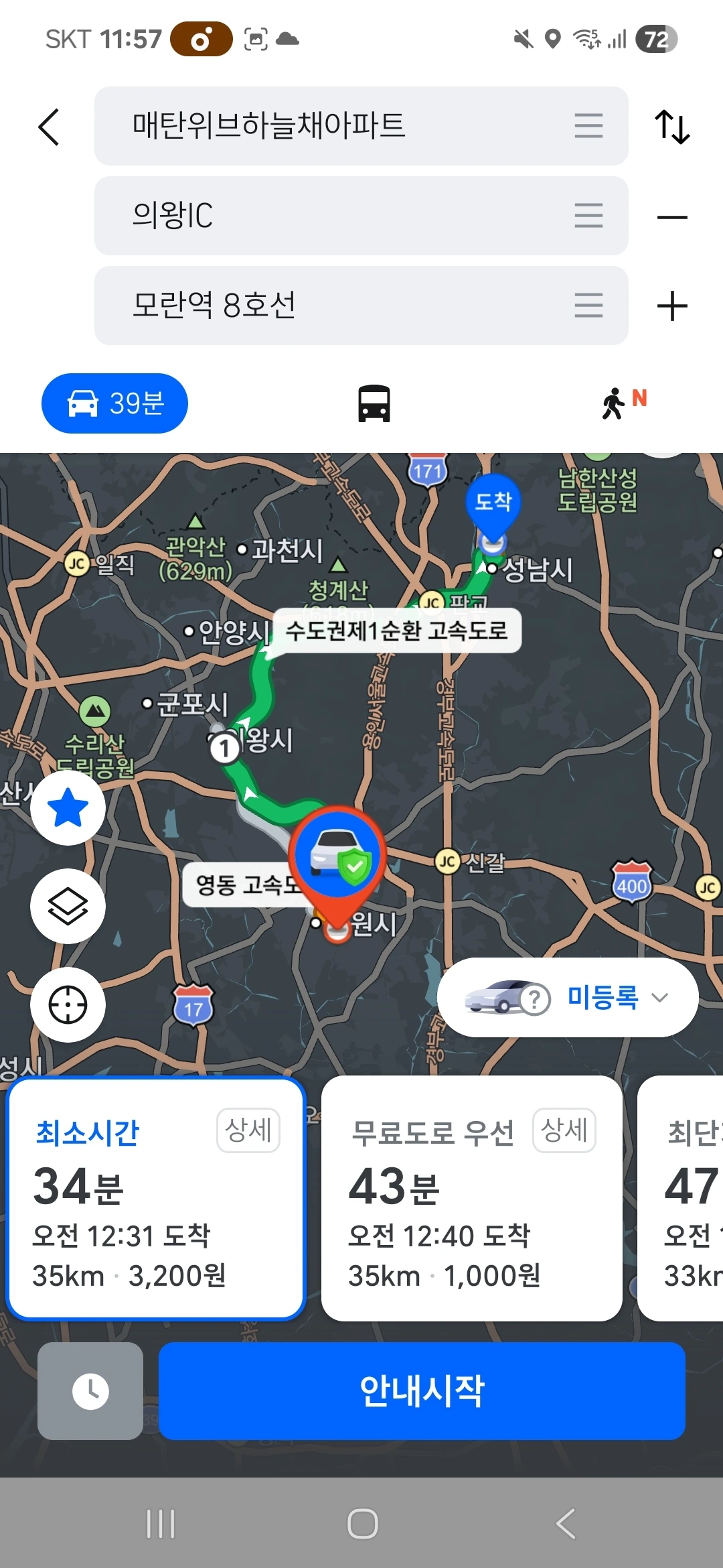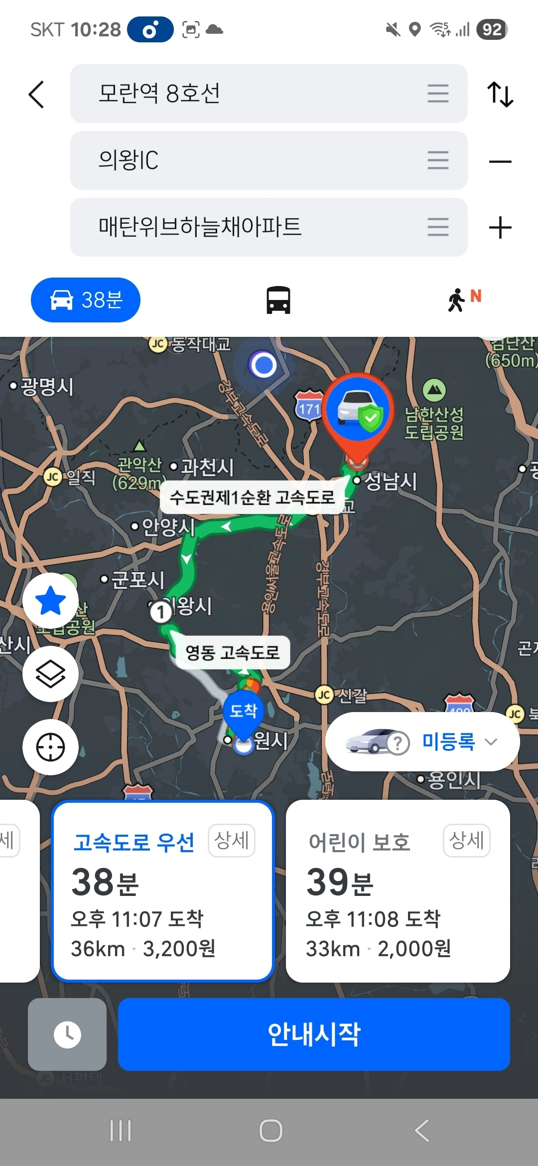 (2) 본하의 수원 영통구와 과천봉담고속도로 이동 상상하기