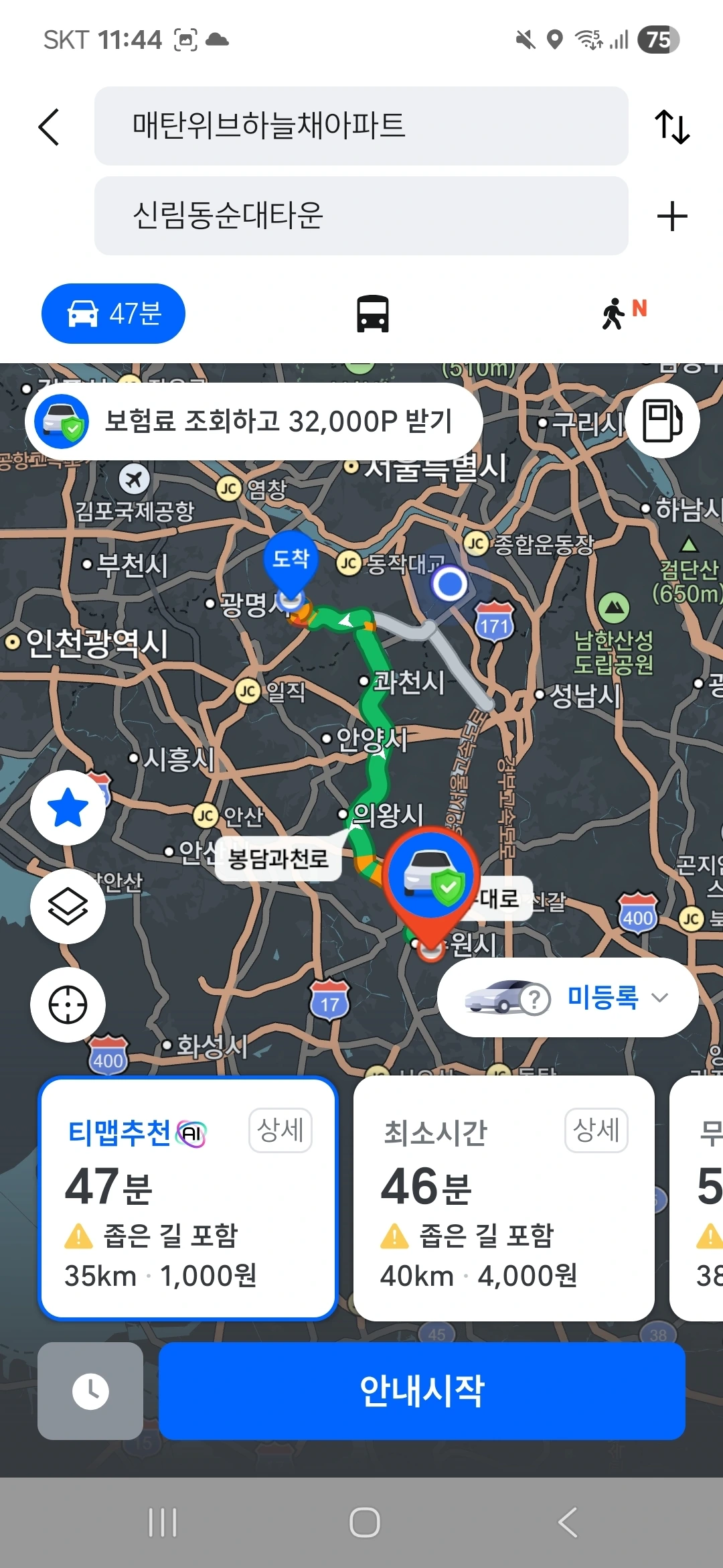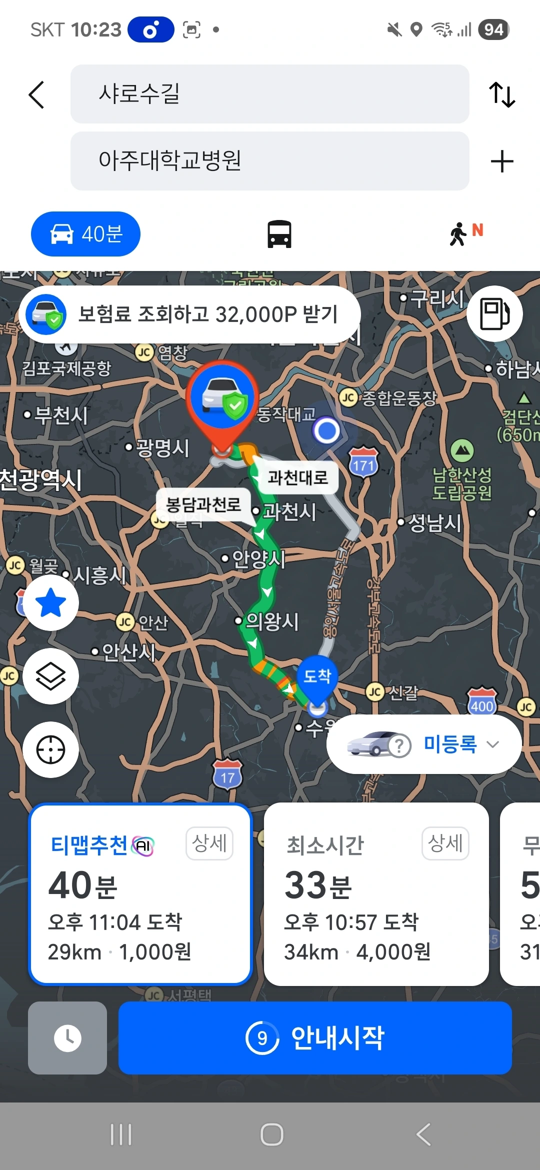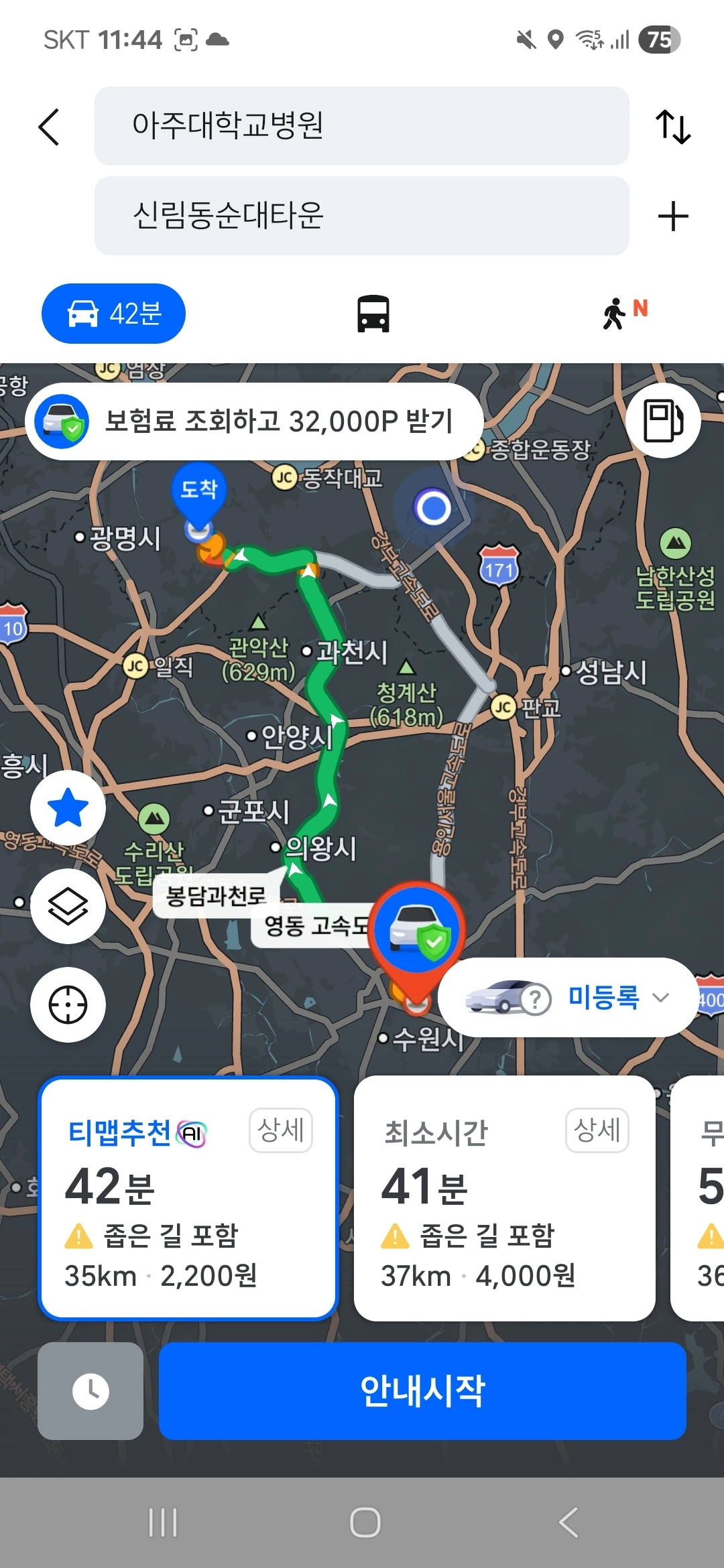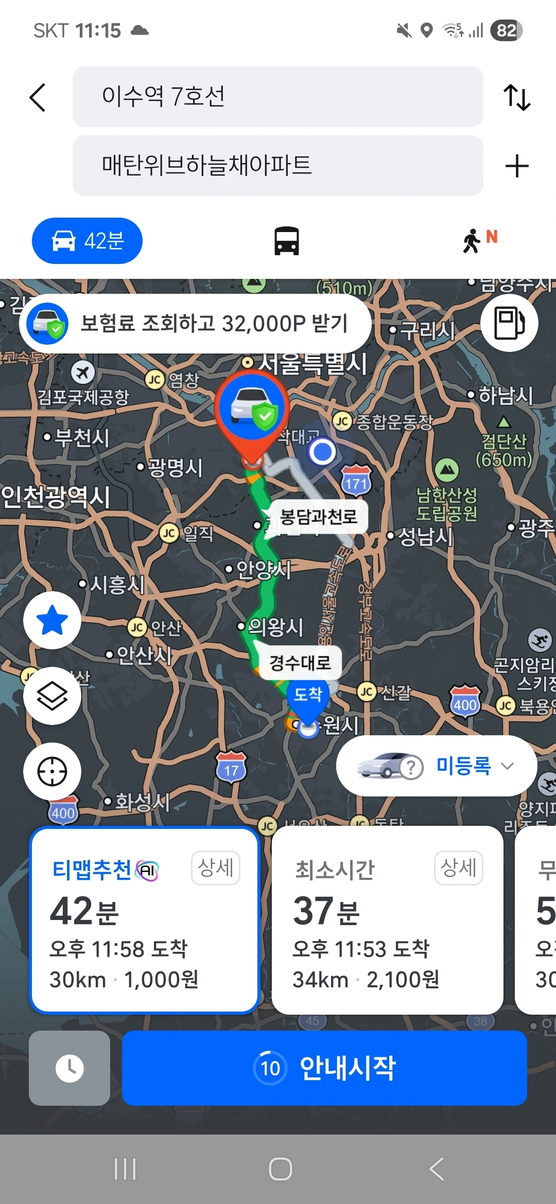 (2) 본하의 수원 영통구와 과천봉담고속도로 이동 상상하기