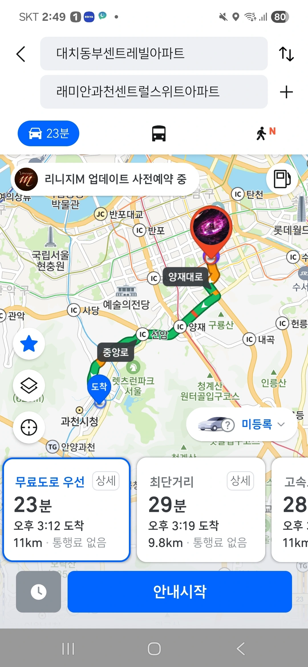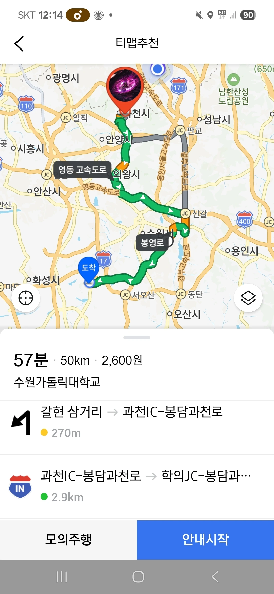 (2) 본하가 실제로 자신의 지인들과 함께 수원 영통구를 거쳐 화성 봉담읍으로 가는 상황에 대한 상상을 하기