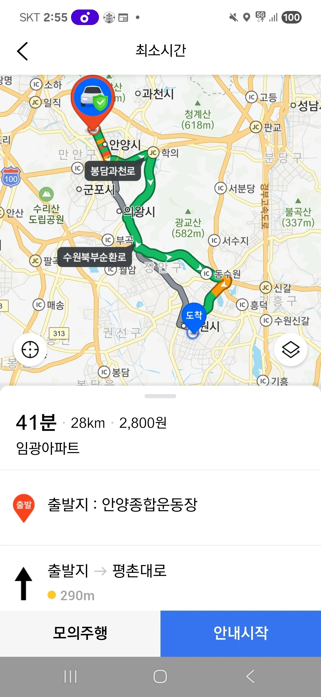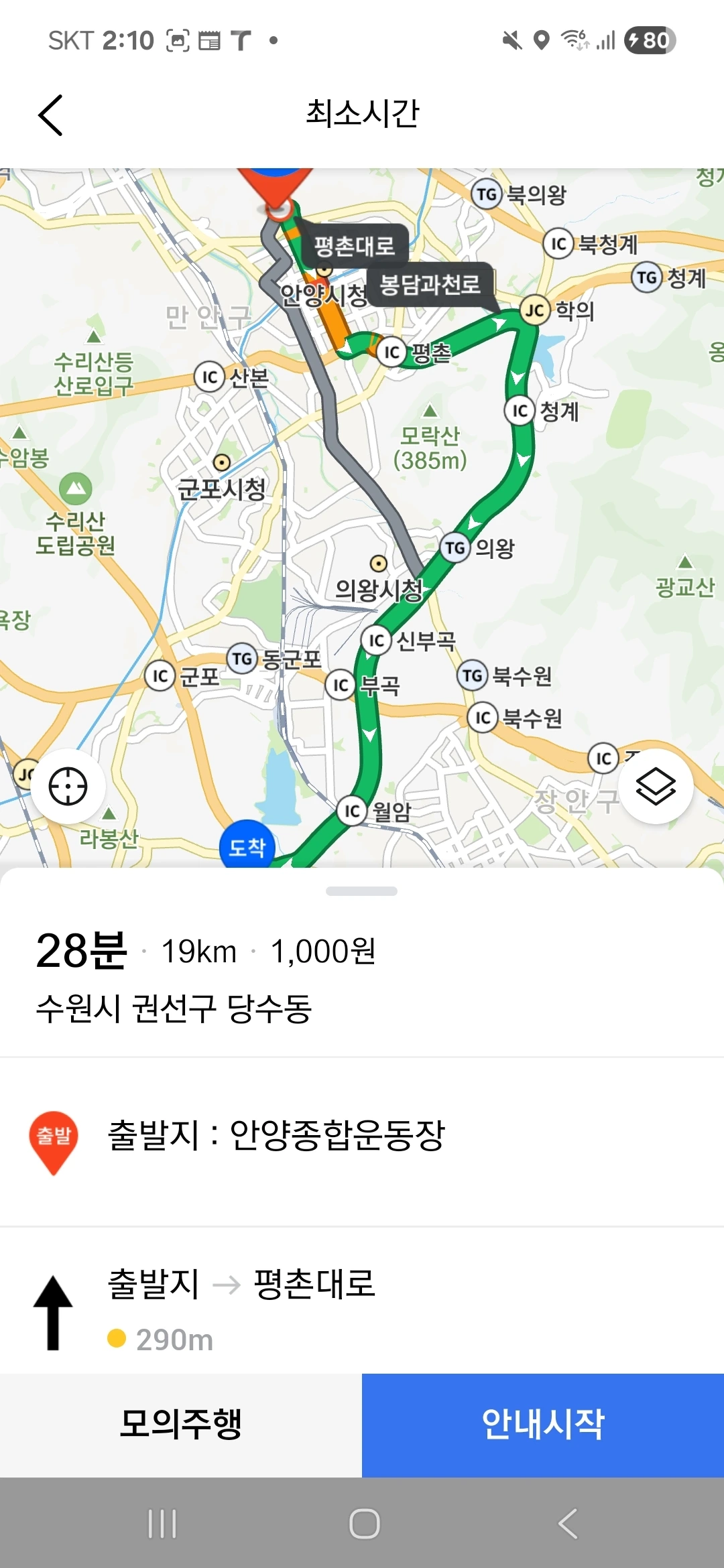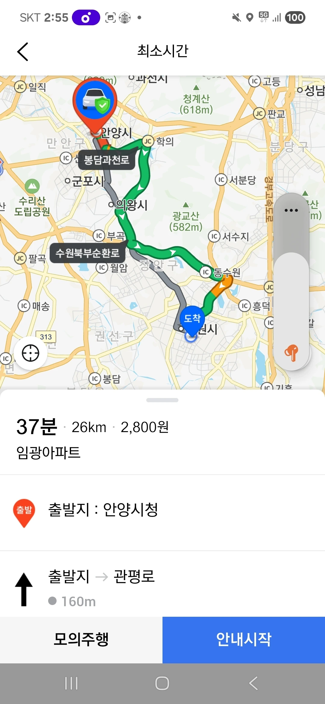 (2) 본하가 실제로 경기도 안양시와 수원시로 놀러 가는 상황에 대한 상상을 하기