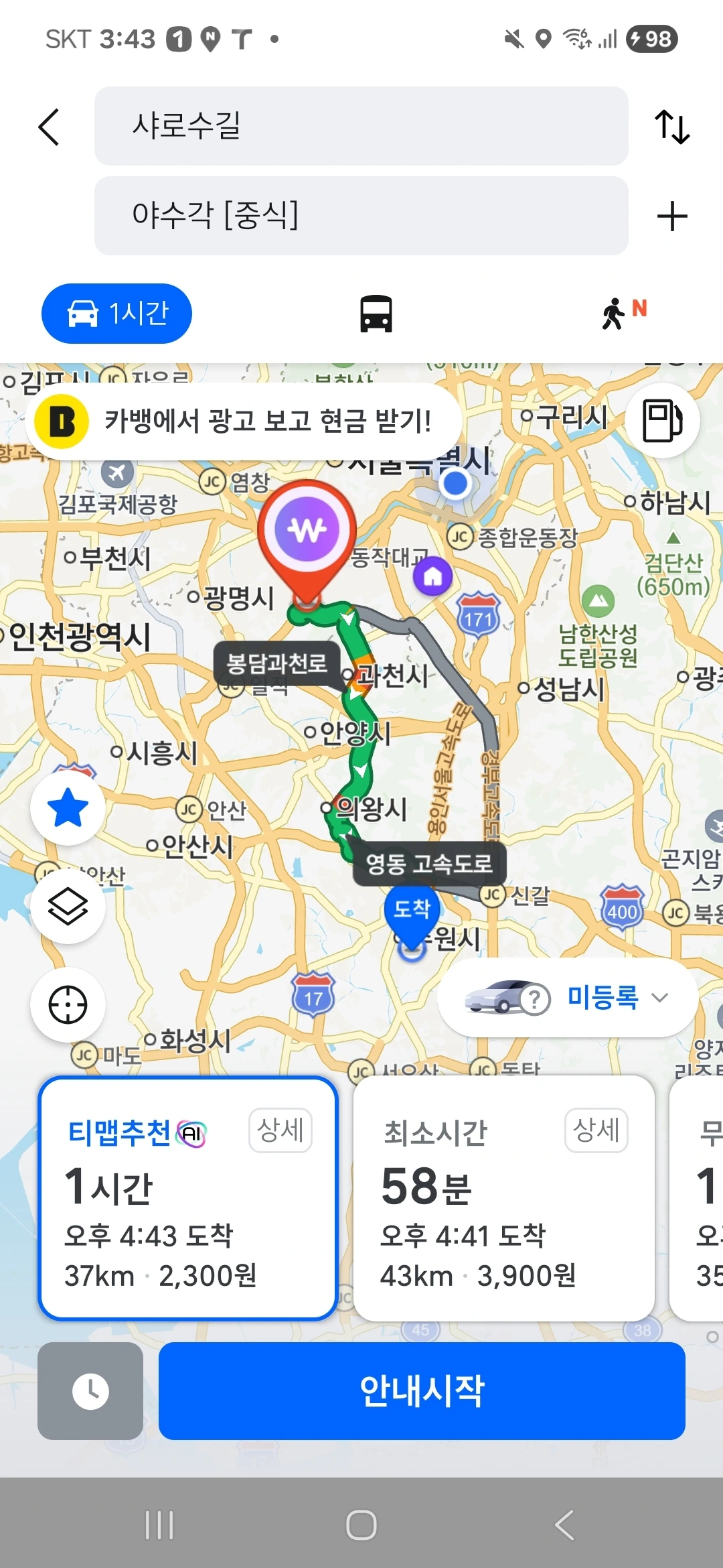 또한, 이렇게, 본하는 수원 영통구에서 시간을 보낸 후, 자가용 승용차나 버스를 이용해 과천봉담고속도로, 양재대로 등의 길을 거쳐 대치동으로 돌아간다.