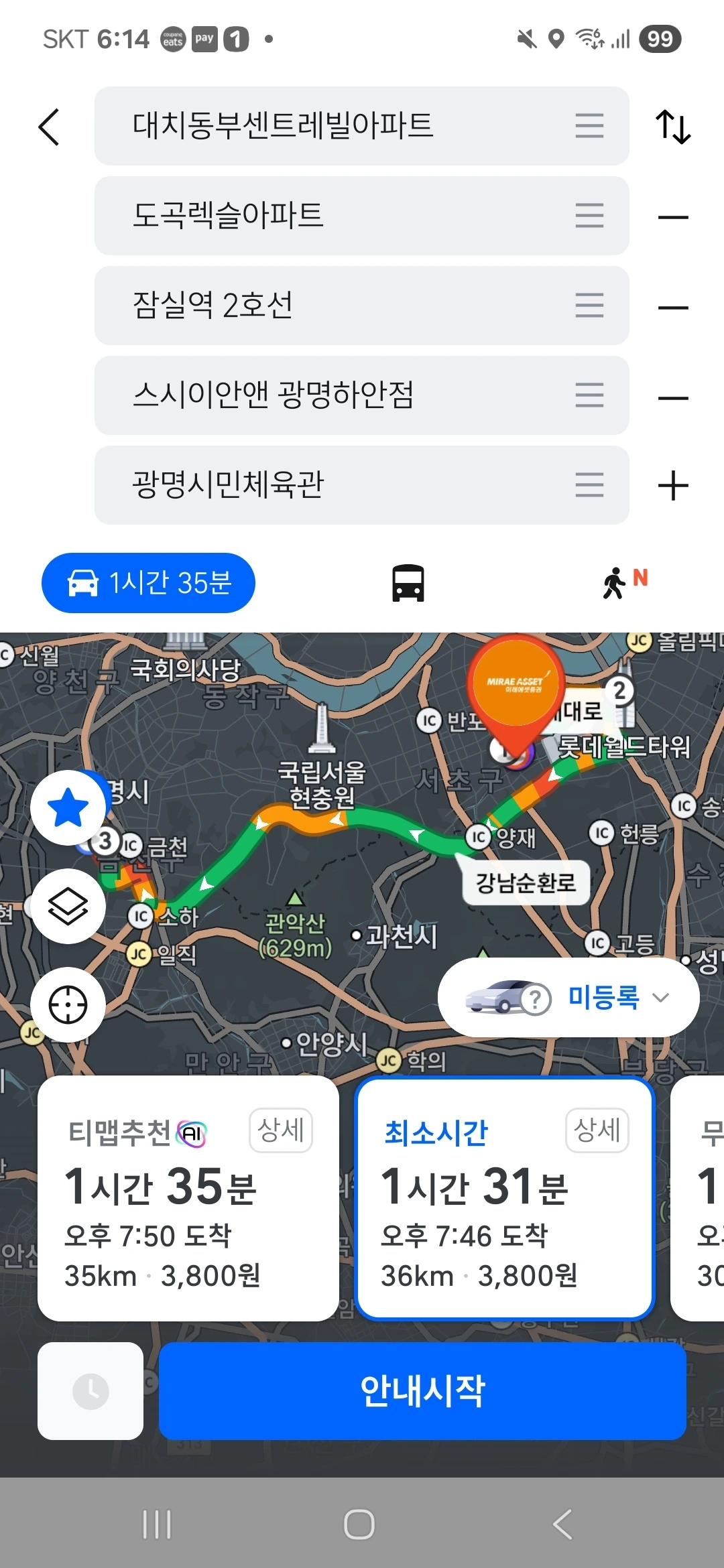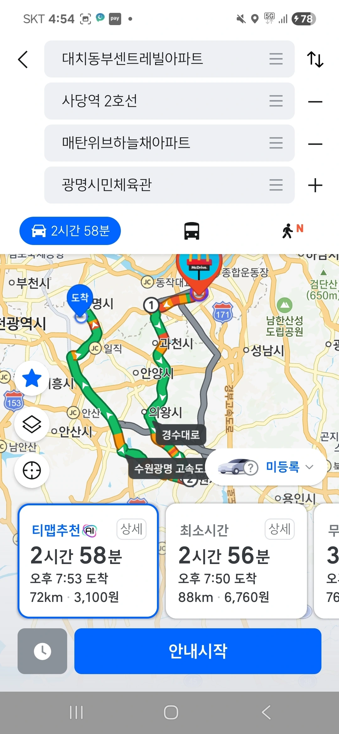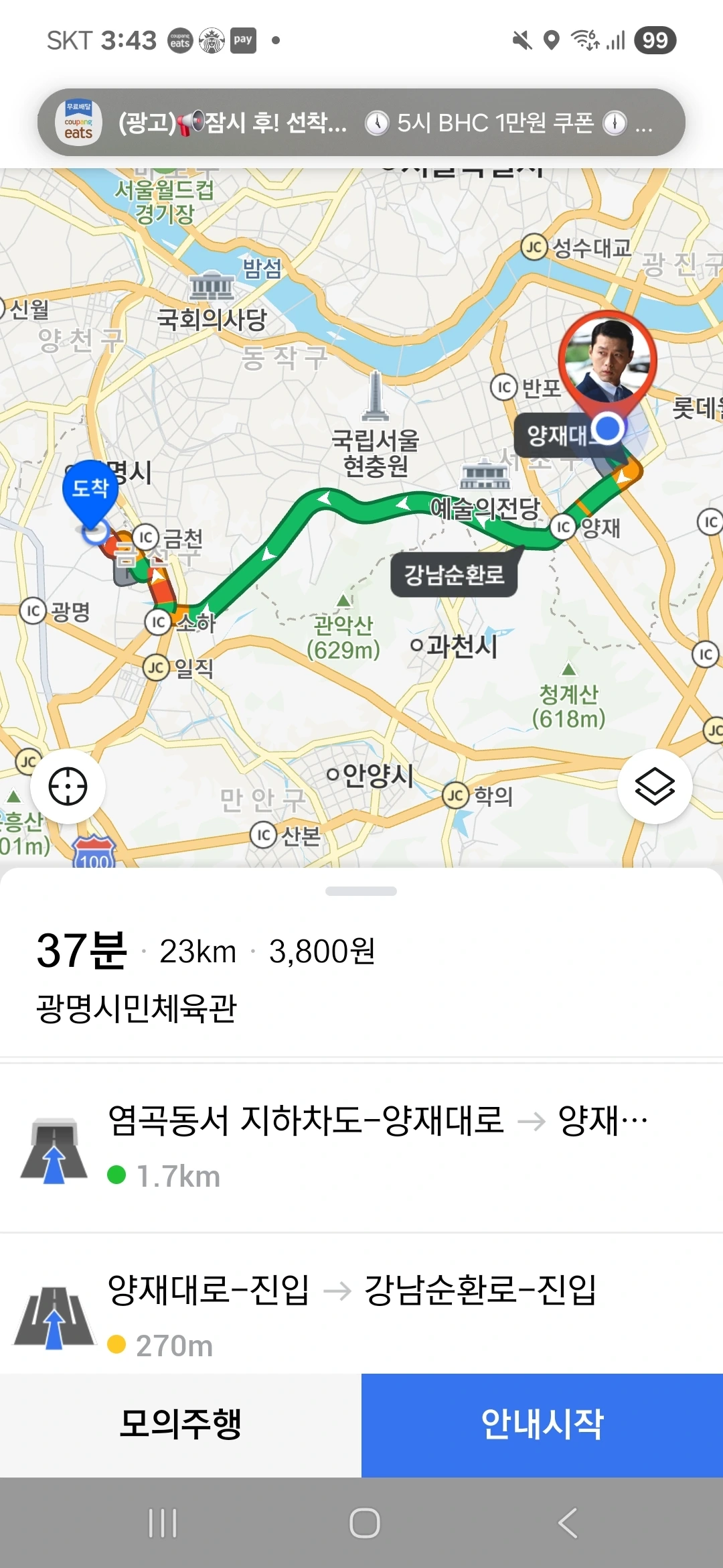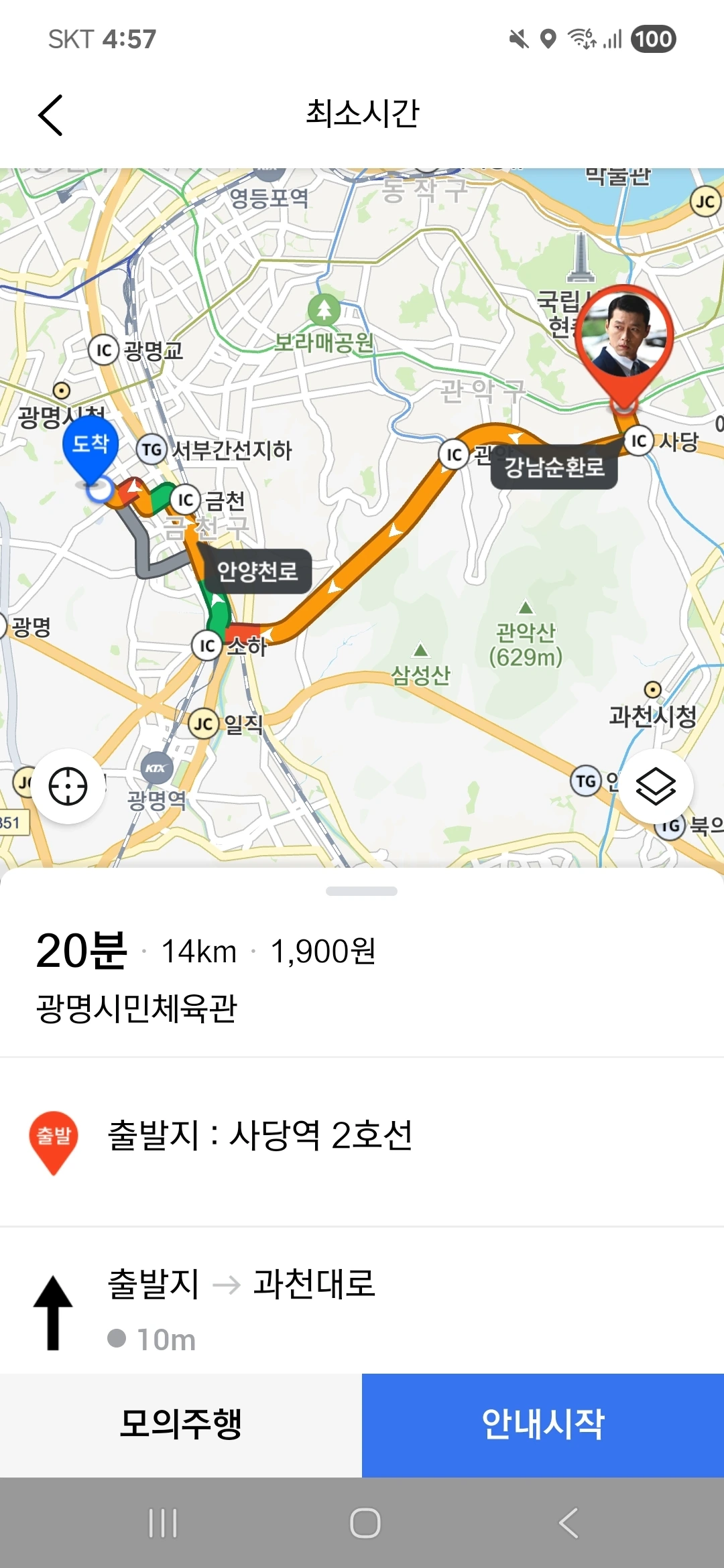 이렇게, 본하 일행이 서울 사당역에서 그 여성분을 픽업한 후에는 강남순환도시고속도로 등을 거쳐 광명시민체육관으로 이동한다. 또한, 본하 일행이 서울 사당역으로 갈 때는 대치동에서 출발하여 상황에 따라 남부순환로 혹은 양재대로, 그리고 강남순환도시고속도로 등을 이용한다. 이 상황에서 본하 일행은 항상 10인승 승합차를 이용하며, 운전자는 상황에 따라 달라진다. 단, 본하 일행이 대치동에서 출발하여 서울 사당역으로 갈 때는 항상 본하의 고등학교 시절의 친구 중 한 명이 운전을 한다. 또한, 이 상황에서 본하 일행은 항상 이렇게 대치동에서 출발하여 서울 사당역으로 갈 때에 그 여성분이랑 전화 통화를 한다.
