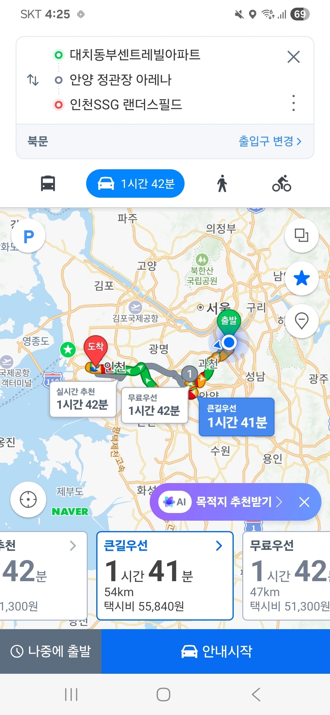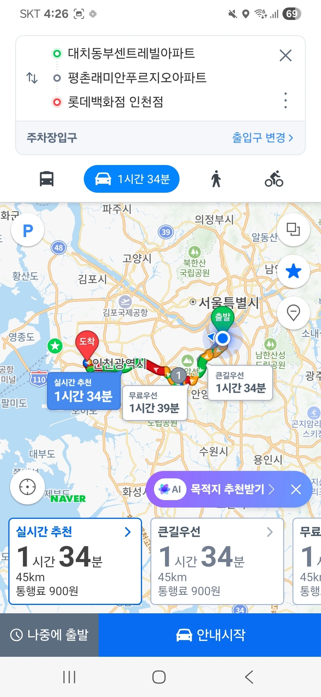 대치동에서 인천 미추홀구로 가는 길,