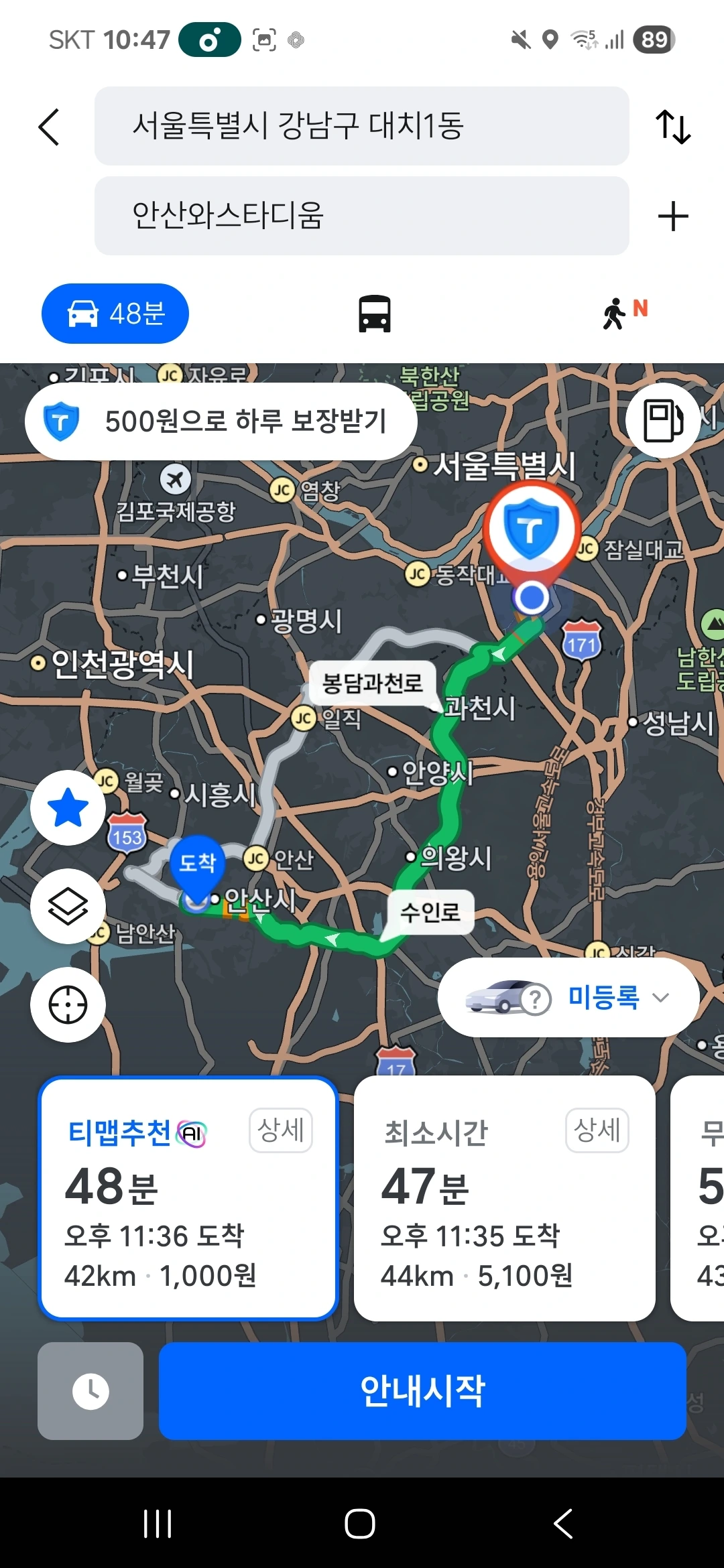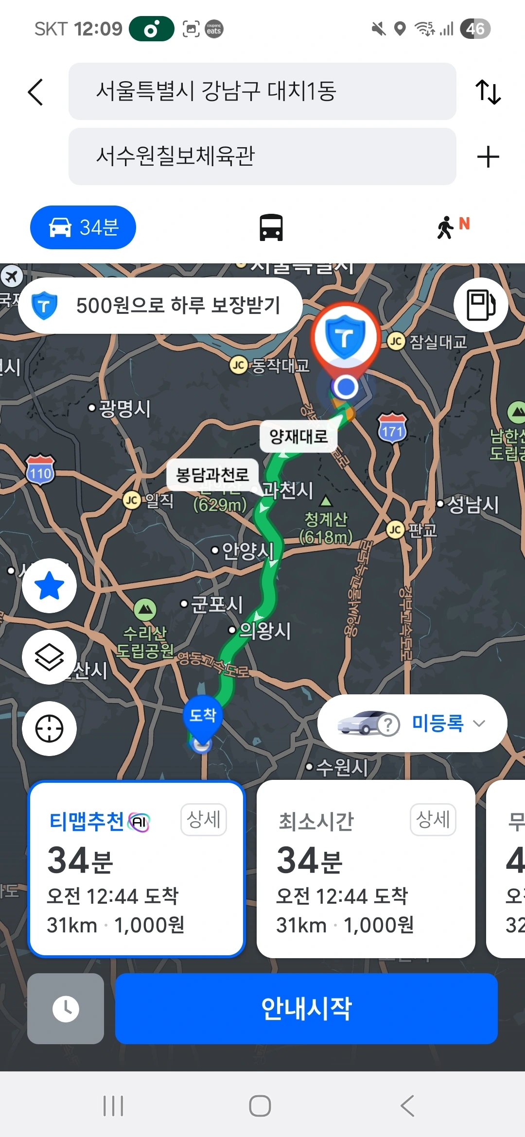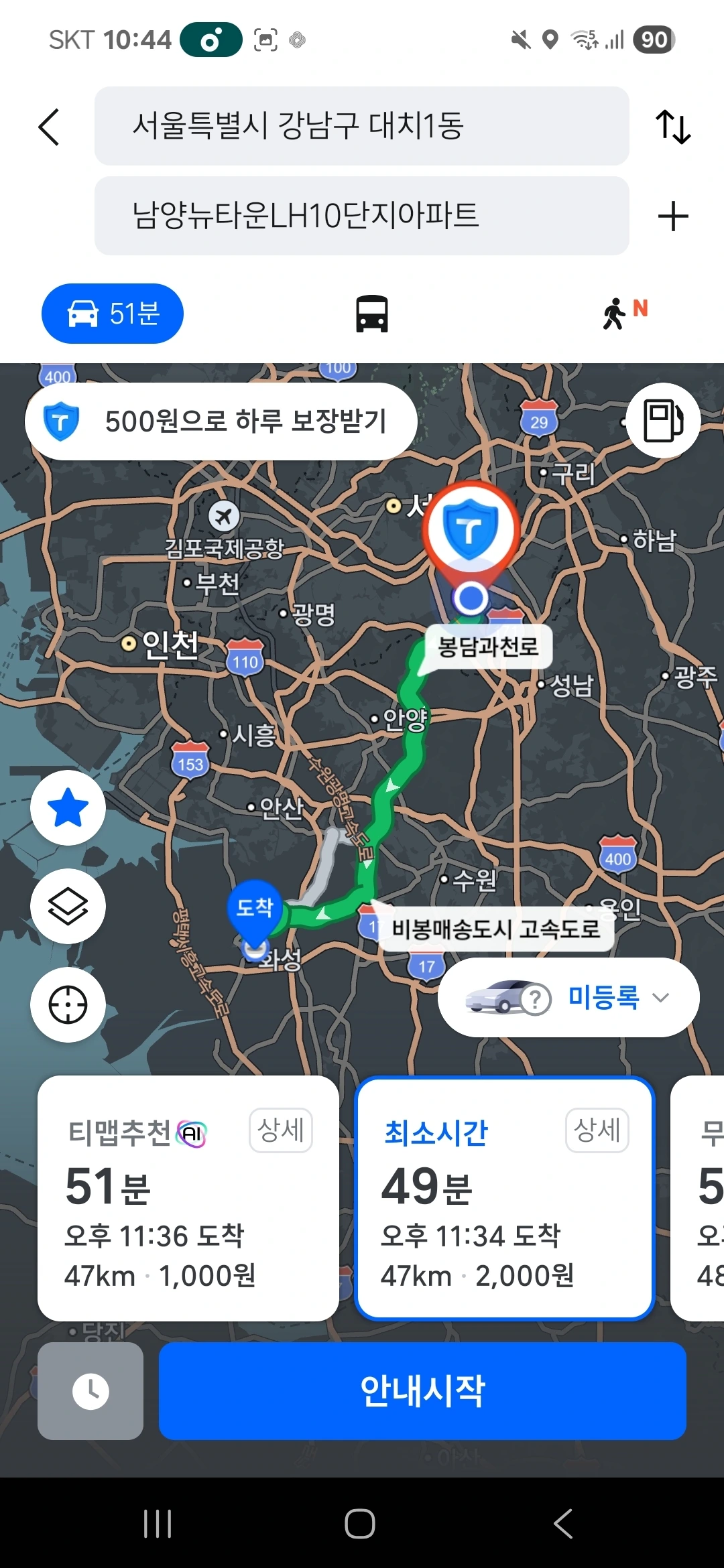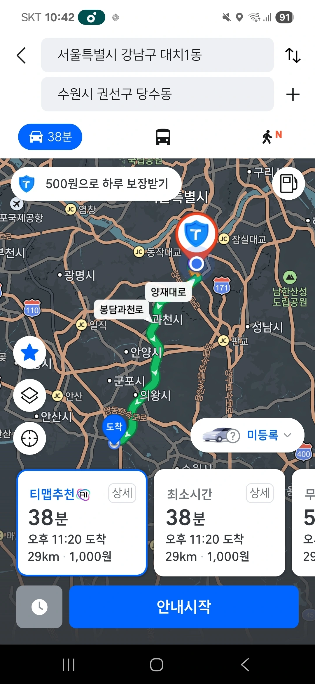 대치동에서 수원으로 가는 길,