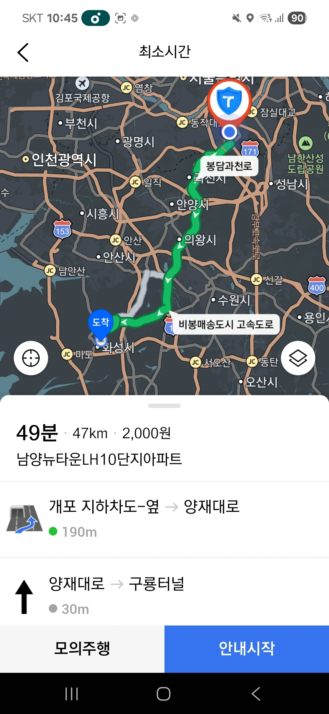 과천봉담고속도로 등을 지나,