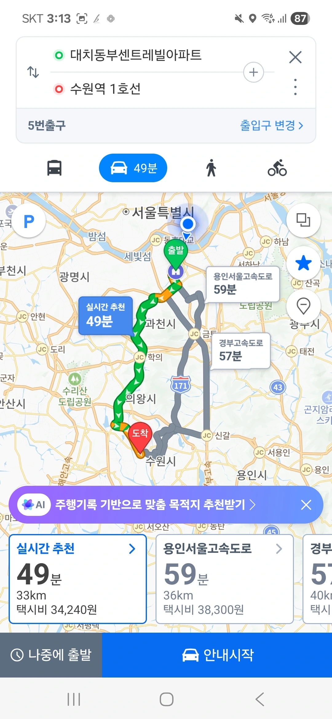 수원으로 가는 길을 떠올리면,