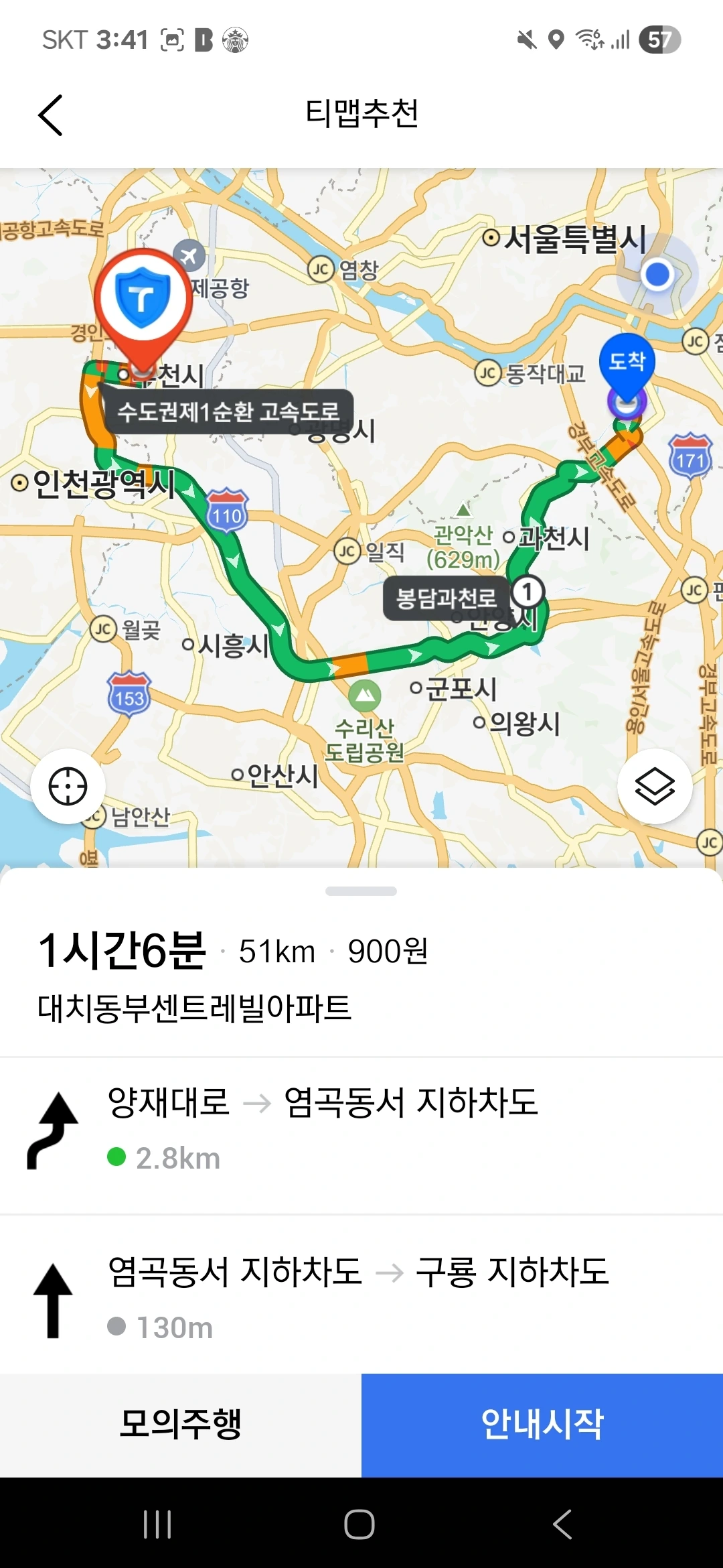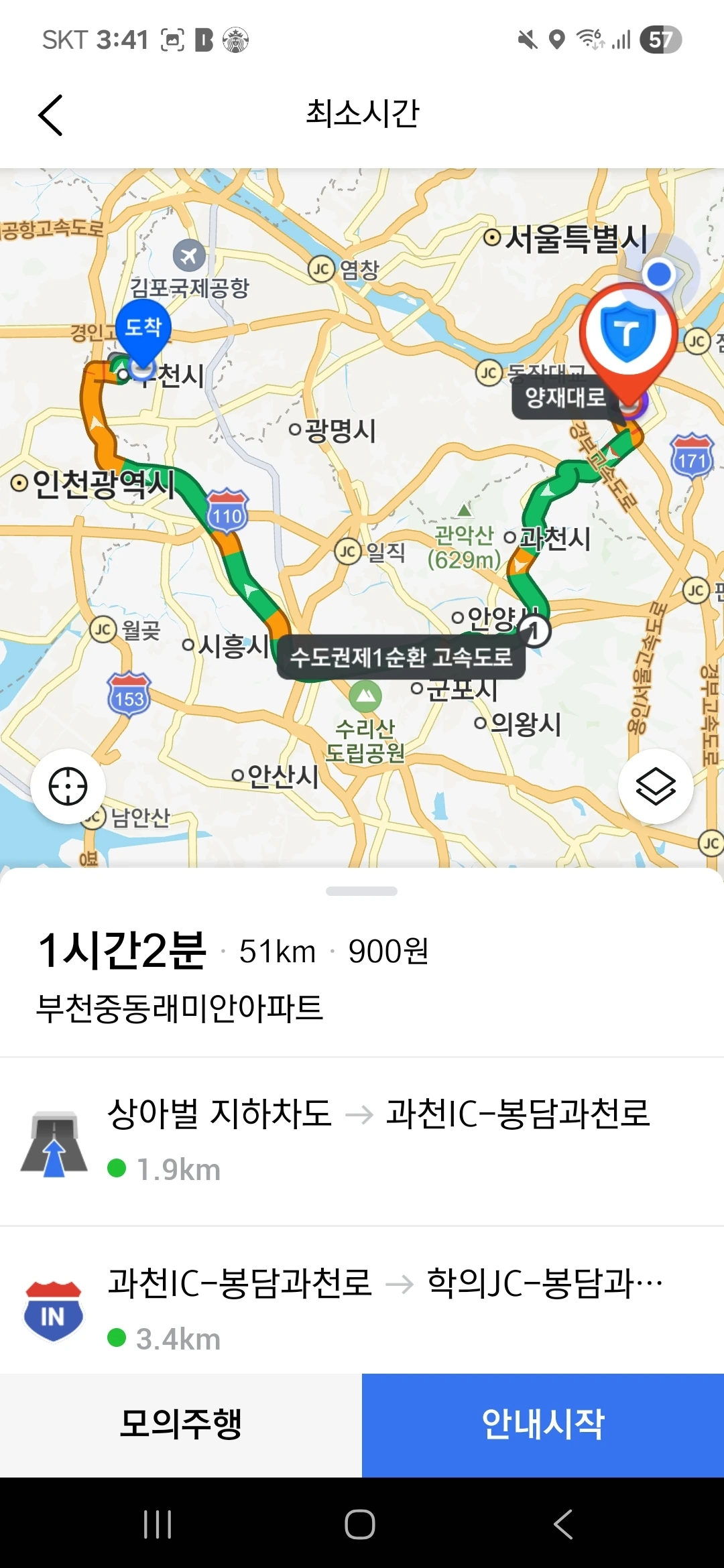 대치동에서 부천 원미구로 가는 길,