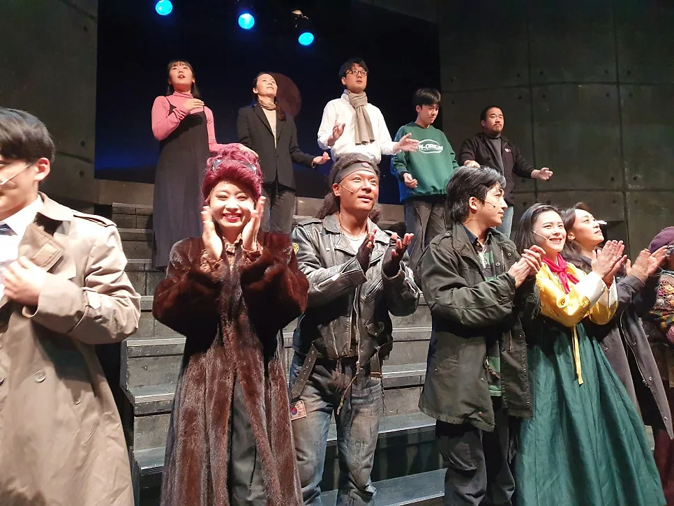 2시간 40여 분의 공연이 끝나고 배우들의 커튼콜 장면에선 혼자 울컥해다. 1998년 11월부터 달렸던 <지하철 1호선>이 이제는 운행을 완전히 멈춘다는 사실에 다시금 마음이 짠해졌다. 이번 공연은 예전처럼 밴드의 라이브 연주는 여전했지만 바이올린이 합류해 음악이 더욱 풍성해졌다. 주로 젊은 배우 배우들이 연기한지라 약간 어색하기도 했고 가사 전달력도 아쉬움이 있었지만(자막이 있으면 좋았을듯) 그런 모든 것을 뛰어넘는 각별함이 더 크게 다가왔다. 맨 앞에 앉았기에 크게 따라 부르면 배우에게 방해가 될까봐 입만 방긋거리며 노래하고 배우 노래가 끝나면 가장 격렬하게 박수도 치면서 공연에 몰입했는데 결국 '울 때조차도 아름다운 너'를 들을 때는 눈물이 주르르 흘렀다. 이렇게 소중한 공연과 이제 안녕이라니. 헤어지기 싫었다. 김민기 선생님이 극중에서 풍자하던 사회 현상은 25년이 지난 오늘날에도 달라진 바 없음도 서글펐다.