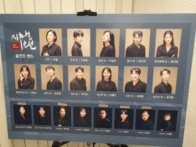 학전가서 표를 받고 잠시 극장 안에 들어가서 기존 배우들의 공연 사진과 오늘 캐스팅 배우들 사진을 찍고