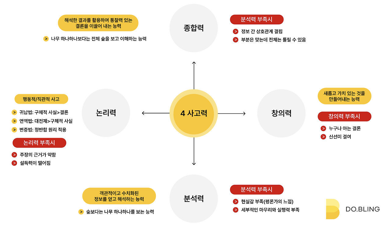 4사고력은 논리력, 분석력, 창의력, 종합력을 말한다.