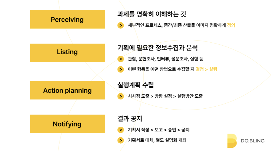 과제인지> 정보 수집과 분석> 실행계획 수립> 결과 공지