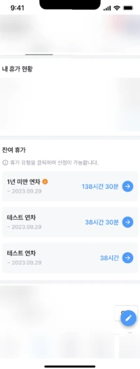 그래서 '휴가 사용'이라는 버튼을 누르는 대신 각 잔여 휴가 리스트(버튼)를 누르는 것을 디자인하였었습니다.