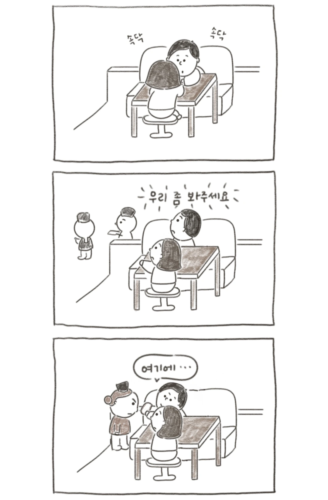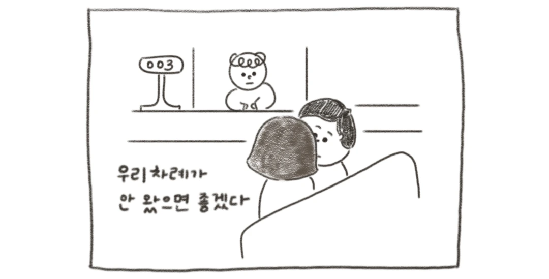 하루는 남편이 번호표를 뽑고 자리에 앉아 우리 차례가 오지 않았으면 좋겠다고 말했다. 한국에서는 '언제 우리 차례가 되는 거야' 하며 기다리는데 우리 차례가 오지 않았으면 좋겠다니. 내 마음도 그랬다. 한국에 있을 땐 뭐든지 척척 해내는 당당한 남편이었는데, 이런 모습을 보니 안쓰러우면서 우리의 모습이 웃겼다.