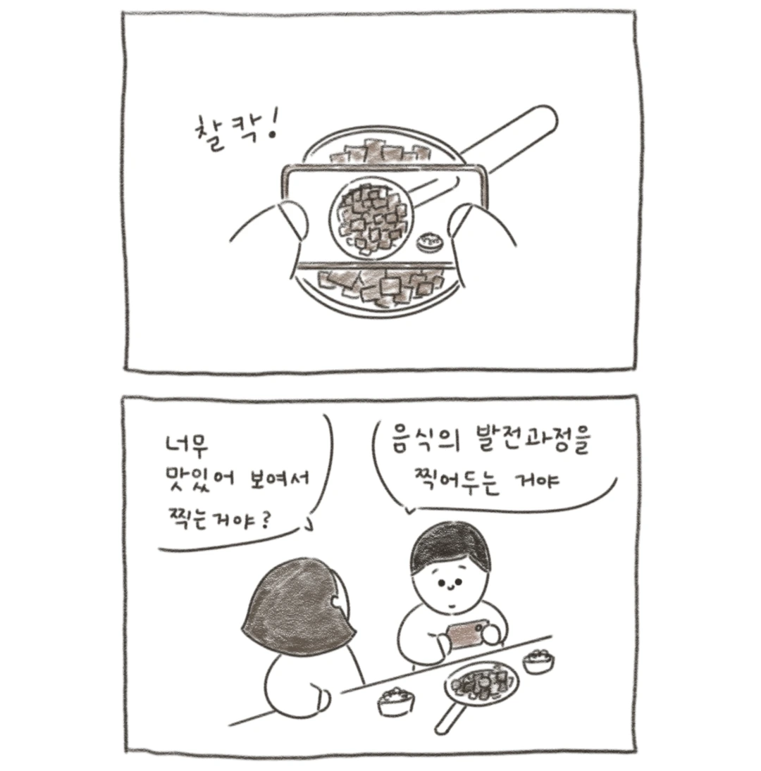 그날 상에 있던 고기는 매운 돼지고기찜이었다. 그때 처음 깨달았다. '아! 고기를 굽는 거 말고 물에도 빠뜨릴 수 있구나!' 여태 엄마가 많이 해주신 음식이었는데도 나는 아예 그 메뉴를 생각하지도 못했다. 그날 큰 깨달음을 얻고 내 음식은 많이 달라졌다. 이것저것 인터넷에서 찾아 시도해 보기 시작했다. 그렇게 하니 매번 인생 첫 메뉴 도전이라 뿌듯하고 재밌었다. 내가 이런 음식을 하다니! 남편도 '오~ 좋은 냄새가 나는데?' 하며 놀라워했다.