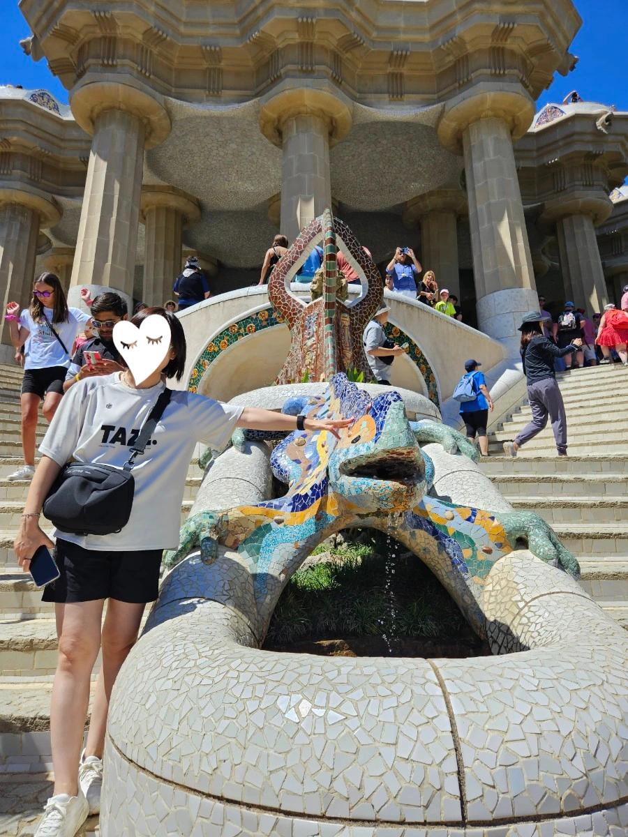 구글맵의 장난질에 구엘공원 꼭대기까지 올라가 거꾸로 내려와 지도를 보며 좀 헤매긴 했지만 앞뒤로 가드를 치고 있는 직원들은 친절하고 착했다. 내내 연인이나 가족단위가 참 많았는데 어른 아이 할것 없이 표정은 여행 중이어서 밝고 건강해보였다. 그들이 보기에 우리도 그랬으리라.