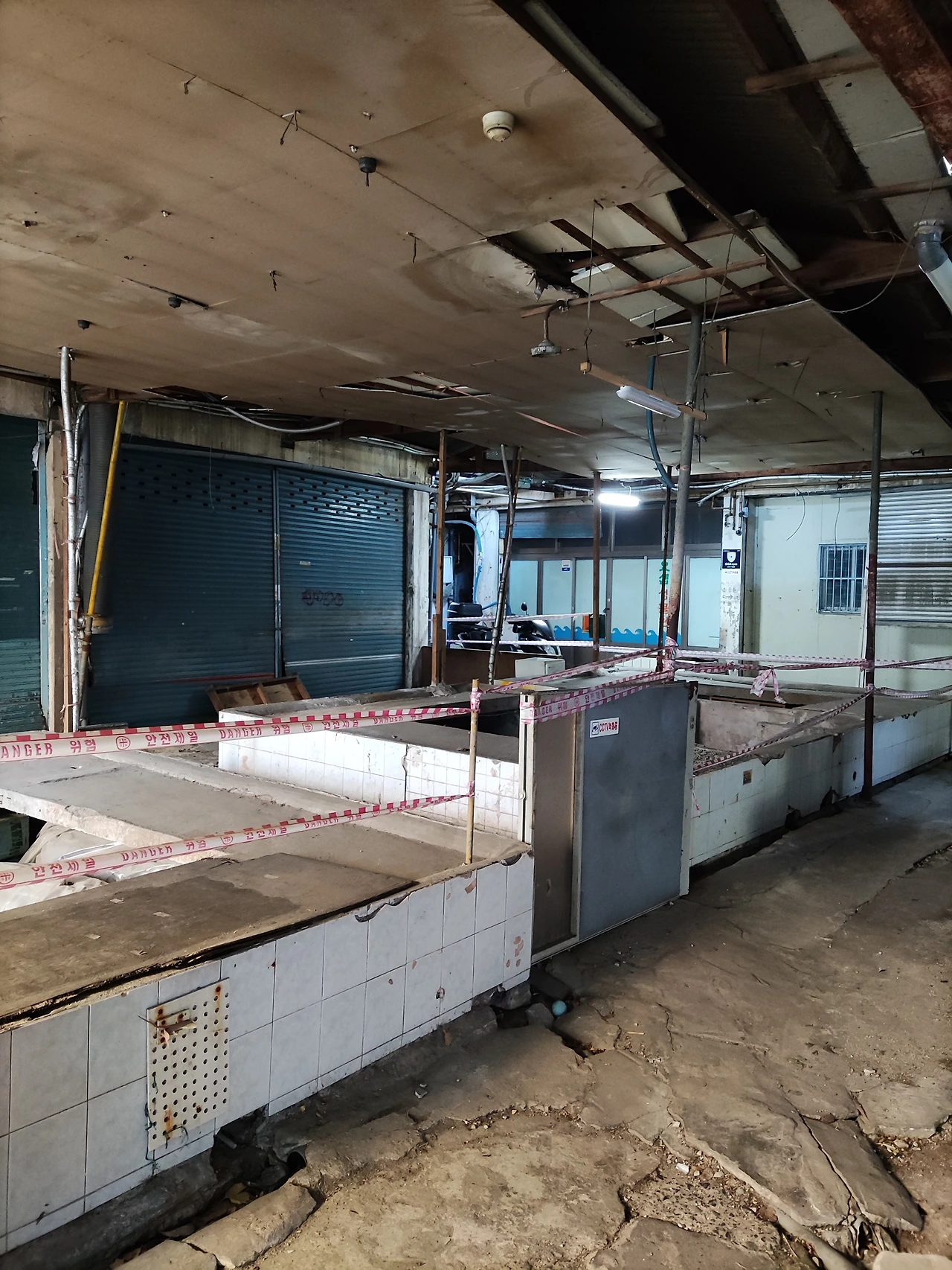 일요일 아침, 어느 골목을 걸어가던 중 을씨년스러운 풍경에 걸음을 잠시 멈추었다. 금방이라도 쓰러져갈 듯한 모습임에도 위험하다는 출입제한 표시는 없었다. 시장이라는 간판이 나타내주듯, 한 때 이 동네에서 물건을 사고파는 중심적인 역할을 했던 장소인 듯했다. 호기심으로 들어가 보았다. 슬레이트 지붕사이로 들어오는 빛 때문에 그나마 알아볼 수 있을 정도. 굳게 닫힌 녹슨 셧터문들이 보인다. 장사를 하는 흔적은 전혀 찾아볼 수 없다. 내가 어릴때즘, 동네 골목에 이러한 시장이 형성된 것이 기억난다. 다른 시장과 경쟁하기 위해 초대가수도 부르고, 경품추첨도 해서 동네 사람들을 끌어모았다. 아마 그 시절의 시장풍경이었던 것으로 보인다. 그리고, 십 수년이 지났다.