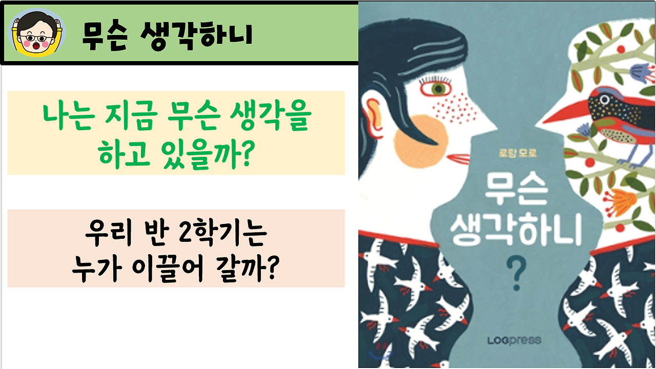 연구년일기를 올리기 위해 SNS을 접속했더니 작년 교단일기가 딱 나온다. 학급임원선거가 있는 날이었나 보다.-6학년 2학기에는 학생들이 임원선거에 대부분 나오지 않는다. 우리 반도 누가 나오려나 걱정도 했던 기억이 새록새록 생각난다.-그리고 2학기 학급 세우기 기간이었다. 학급 세우기 마지막 날이라 그림책 두 권을 가지고 하루 수업을 하였다. 먼저 '무슨 생각하니'라는 그림책을 통해 초등학교 마지막 학기에는 어떻게 보낼 생각인지에 대해서 같이 알아보는 시간을 가지고, 학급임원선거를 한 후 아이들과 이번에는 '아마도 너라면'을 통해 2학기에 친구들과 함께 할 수 있는 것들을 찾아보고, 타인을 이해하고 배려하는 방법을 찾아보려고 했었다. 그리고 마지막으로 지난 학기에 운영되었던 학급헌법을 손보고, 1인 1역 정하기, 임원이 준비해야 할 것과 2학기 우리 반에서 하고 싶은 것을 설문조사한 내용을 가지고 2학기 전체 일정을 짰다. 6교시라는 시간 동안에 하다 보니 글에서도 급하게 마무리한 것에 대해 아쉬움이 남아 있긴 했지만 말이다. 가끔 옛 글을 소환해 주는 SNS가 오늘은 반갑다는 생각이 든다. 뭐... 가을이 되어가니 추억에 잠깐 잠길 수도 있지 않을까 하는 마음이 들었나 보다.