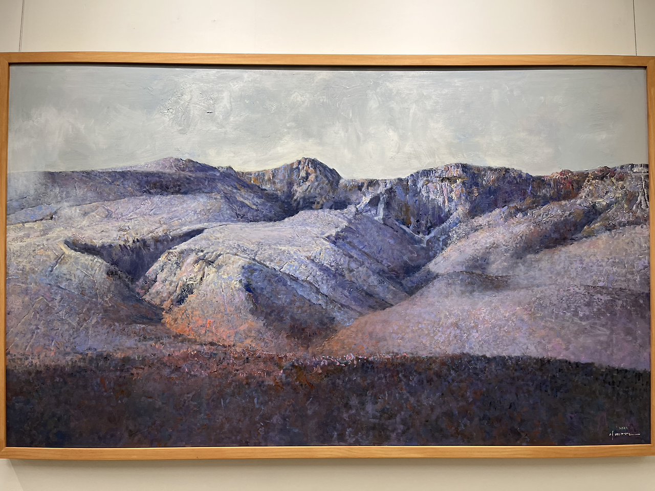 <한겨울의 한라산> 겨울의 한라산은 또 어떠한가. 이옥문은 계절별로 한라산을 그리고있다. 각 계절별로 다른 색깔, 다른 분위기를 보여준다. 형태에 대한 절제미를 유지한 가운데 오직 색깔과 빛, 질감으로 한라산의 다른 계절을 표현한다는 데서 이옥문의 진가가 느껴진다.