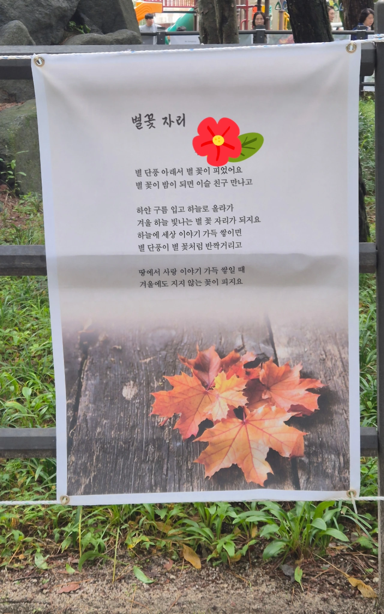 처음 본 단풍 숲에서 별 단풍을 만나고, 사랑하는 사람을 만나고 , 그날 본 하늘에는 별 단풍이 별자리가 되었던 그날의 첫 데이트의 느낌을 담은 자작시를 꿈처럼 숲에 걸었습니다