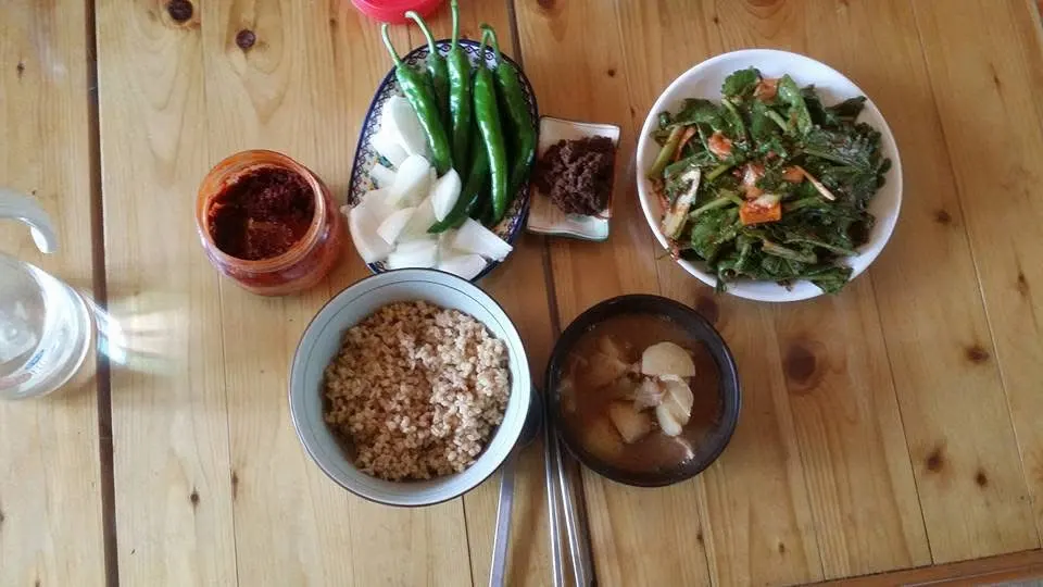 보리밥 비빔밥이 쌀밥 비빔밥보다 좋은 점은 보리쌀은 잘 뭉개지지 않는다는 점에 있다. 보리의 톡톡 터지는 식감이 그대로 보리밥으로 전달된다. 쌀밥은 비비면서 많이 뭉개져 보리쌀의 톡톡 터지는 식감에 떨어진다. 여기에 처음 열린 초벌 풋고추와 갓 수확한 양파를 된장에 찍어 먹으면 최고의 보리밥 제철 밥상이 된다. 토하젓을 곁들여 비벼 먹는 것도 제대로 된 제철밥상의 품위를 높여준다. 보리밥 제철밥상에 들어가는 모든 식재료가 텃밭농사를 통해 얻어진 것들이다. 배고팠지만 어머님의 사랑이 듬뿍 담긴 보리밥!