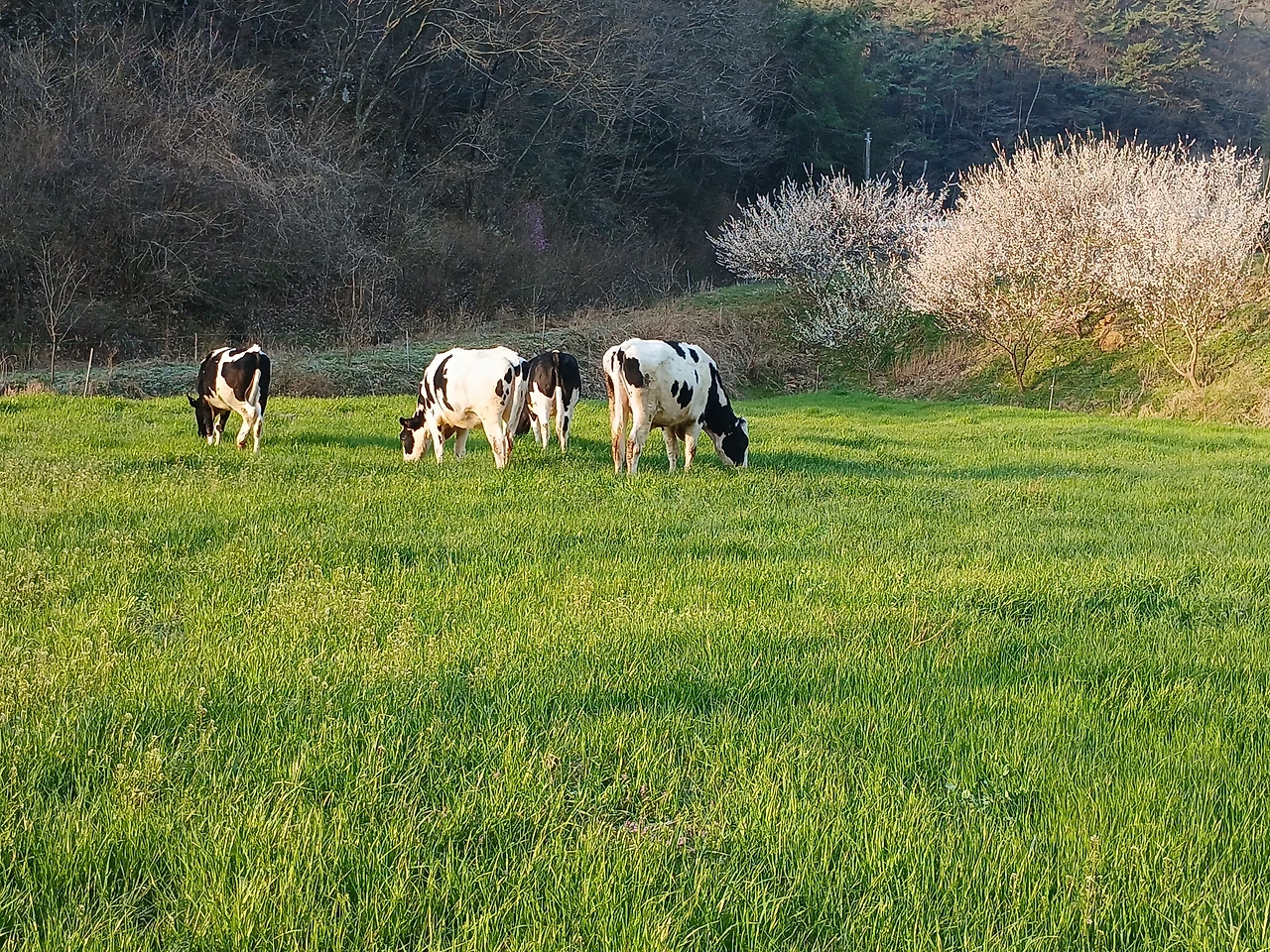 매년 벚꽃이 필 무렵 소들은 축사에서의 생활을 마치고 초원으로 나간다.