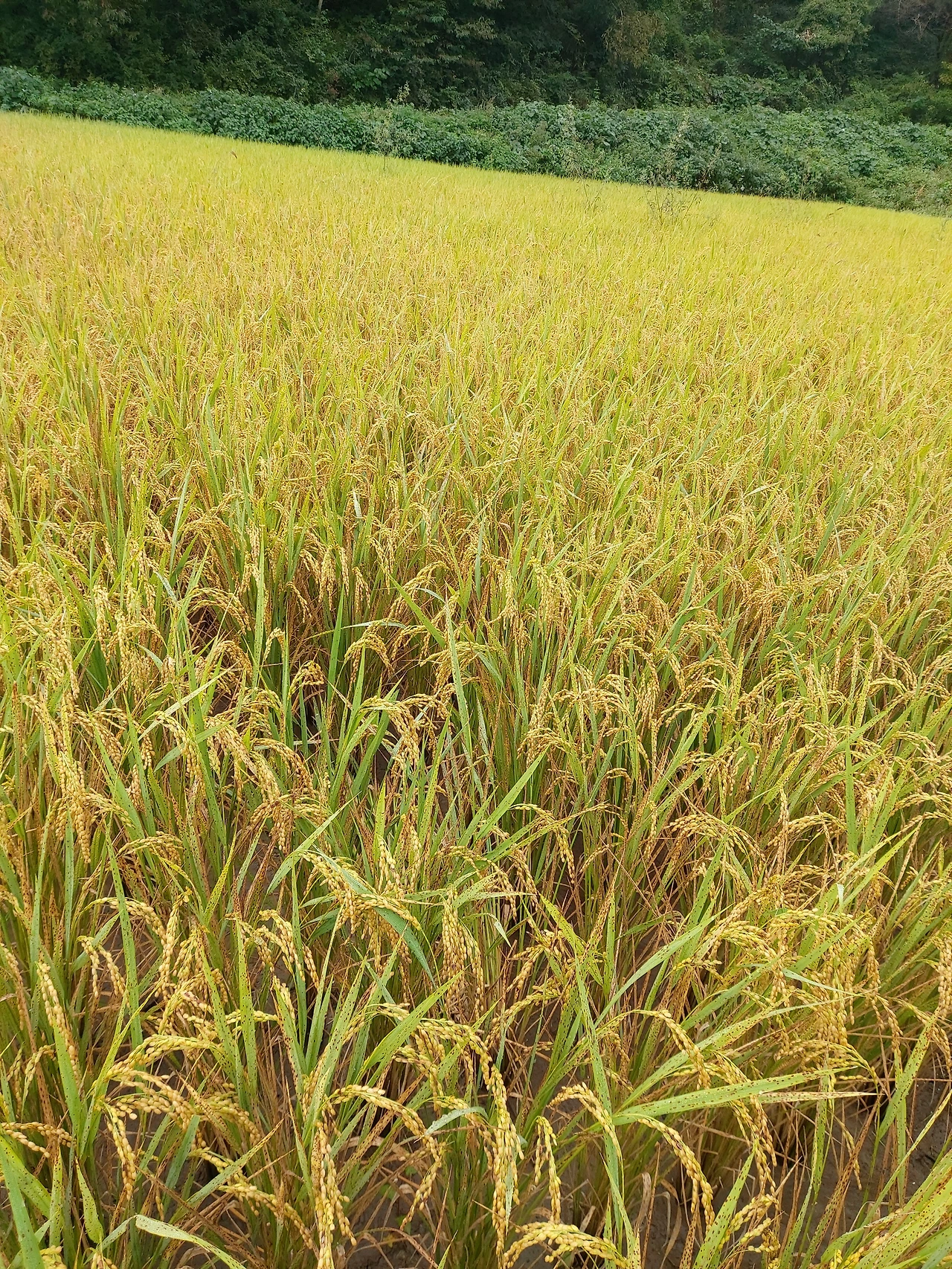 산골짜기 코딱지만 한 다랑치 논에 누렇게 가을이 물들어 간다. 10월 중순쯤 수확하려고 물꼬를 자르고 언덕 쪽 고랑을 다시 쳐 올렸다.