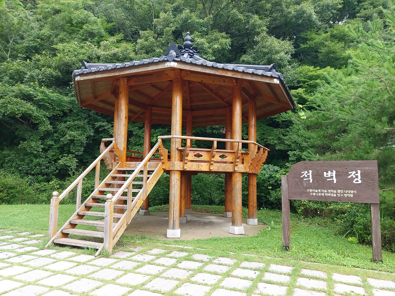 주룡포에 나덕명 장군은 적벽정을 세우고 임진왜란의 고단했던 상처를 더듬으셨을 것이다. 현재 적벽정은 장군이 세운 뒤 소실되어 최근에 다시 세운 정자다. 두령량광장은 무안군 일로읍 주룡마을과 영암군 학산면 미교마을을 잇는 물길을 지칭하는 말이다. 두령량광장의 이름 속에 그 옛날 조상들의 영산강에 대한 경외감이 느껴진다. 적벽정에서 두령량광장과 영산강 상류를 바라보는 풍경이 너무도 아름답다. 굽이치는 강과 함께 용은 주룡포에 살았다. 고려를 건국한 왕건 또한 견훤과의 일전을 위해 주룡포를 지나 영산강을 헤쳐 몽탄나루와 파군교로 갔다. 아쉽게도 목포에서 보성으로 가는 철도 다리가 만들어져 장군이 바라보셨을 아름다운 풍경은 사라졌지만 적벽정에서 바라본 비경에 놀라움을 감출 수 없었다.