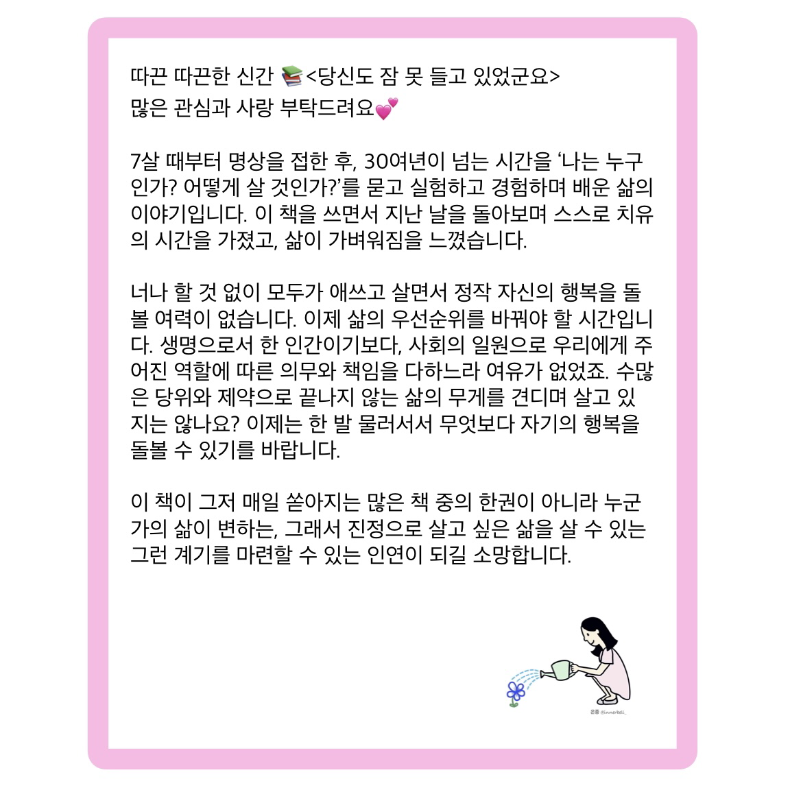 따끈 따끈한 신간 <당신도 잠 못 들고 있었군요>가 출간되었습니다. 많은 관심과 사랑 부탁드려요.