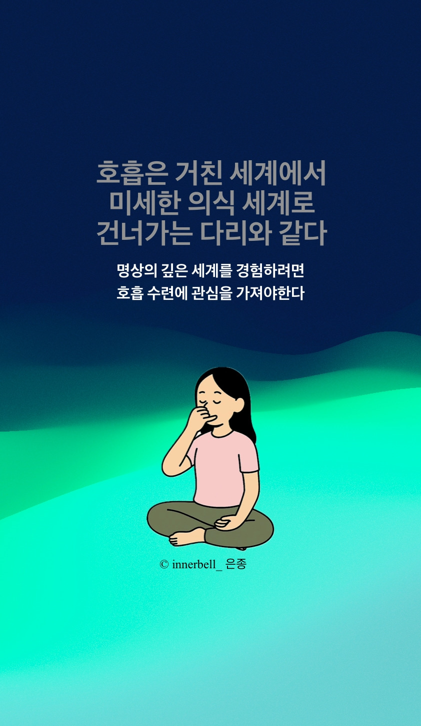 호흡은 거친 세계인 세상과 몸, 미세한 세계인 마음과 의식에 직접적으로 영향을 미치기 때문입니다.