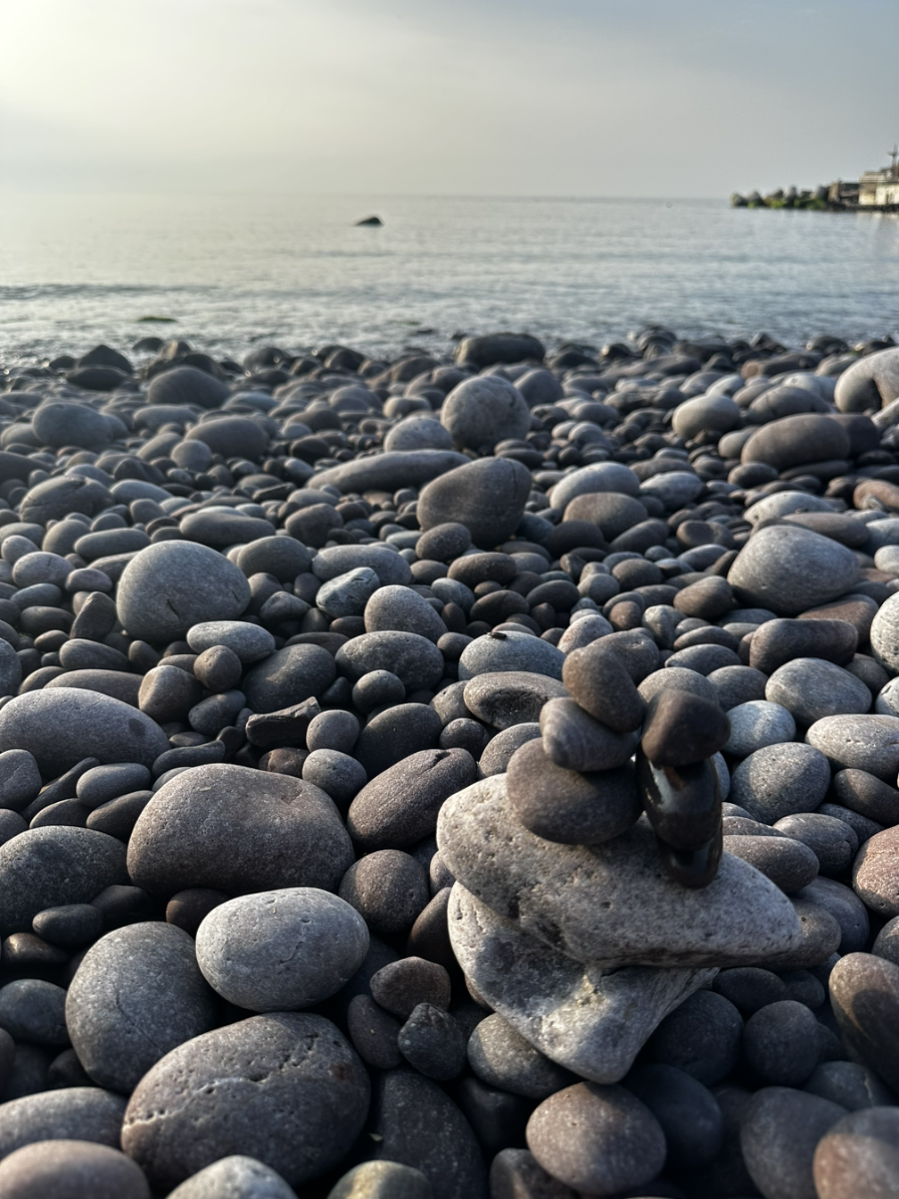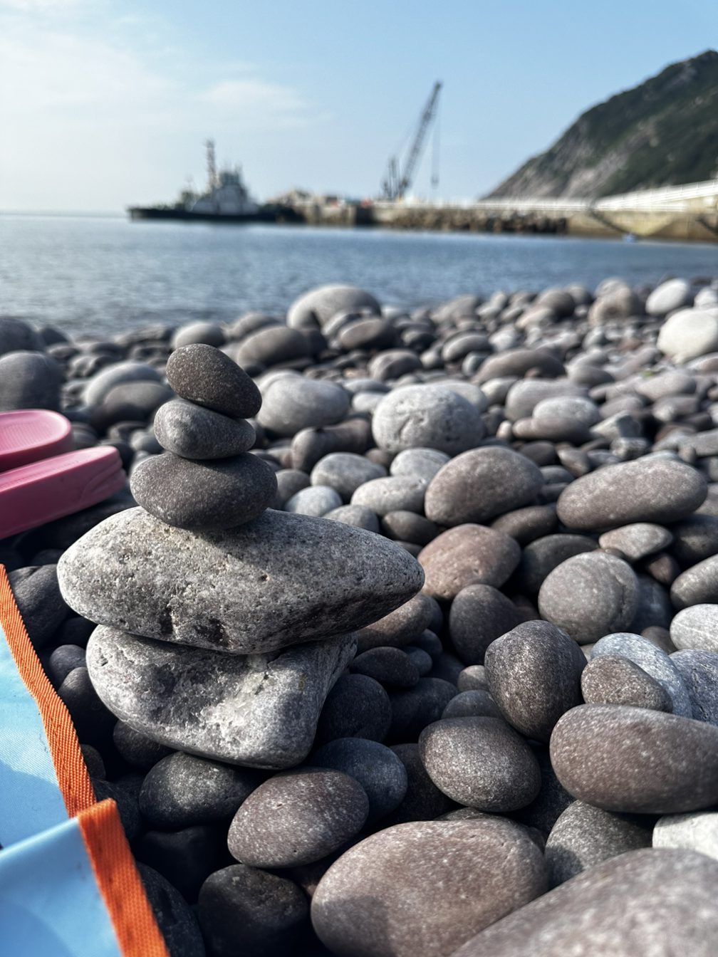 너도 나도 소원을 빈 걸까? 그저 동그란 돌을 요리조리 균형 찾아 쌓아 올린 걸까? 좋은 자리를 찾아 헤맬 때 가장 많이 본 것은 바로! 돌탑! 그래서 나도 자리를 잡고 제일 먼저 돌탑을 쌓았다. 더 높고 웅장한 돌탑을 기대했다면 나의 균형 감각은 5개가 한계였던 거 같다. 둥그스름한 돌을 탓하고 싶지만, 사진에 없는 뒤편엔 나의 허리까지 오는 돌탑이 한두 개가 아니기에 돌을 탓하지는 말아야겠다.