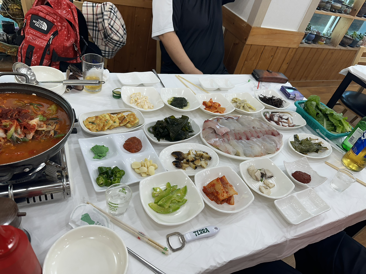 아들을 소개해주신다고 했던 어머님과 아버님은 혼자 밥도 못 챙겨 먹을까 걱정되었는지 사장님께 "그 혼자 온 여자가 어디 갔냐"며 찾았다고 한다. 타이밍이 딱 해수욕 마치고 숙소로 돌아오는 길 사장님을 마주쳤는데, 어서 식당에 가보라는 말을 듣고 가보니.. 이미 자리는 3명으로 준비되어 있었다.