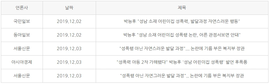 한편 이 사안과 관련해서는 정부의 대응도 도마 위에 올랐는데, 주무부처라고 할 수 있는 보건복지부 박능후 장관이 사건에 대한 발언 때문이었다. 박 장관은 2일 국회 보건복지위원회 전체회의에서 이 사건에 대한 대처 방안을 언급하는 과정에서 ‘발달과정에서 나타난 자연스러운 모습’이라고 말했는데, 이 내용은 2일과 3일에 주요 언론들에게 비중 있게 보도되었다. 해당 보도는 다음과 같다.