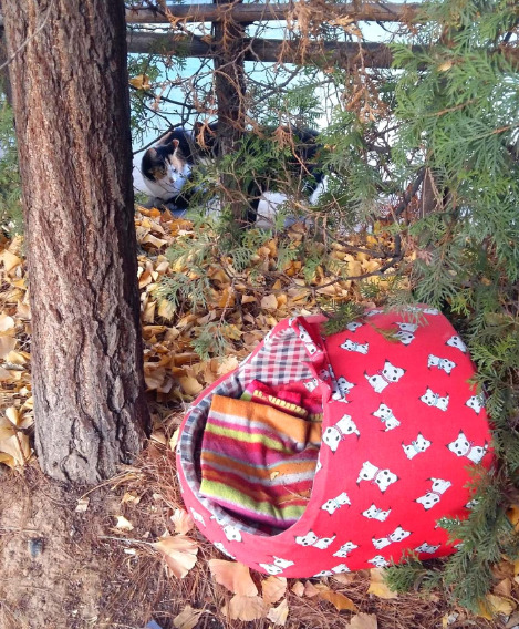 평소 같으면 누가 이런 개집을(그것도 이렇게 눈에 잘 띄는 빨간색 개집을) 여기에 버렸나 투덜거리며 처리 방법을 고심했겠지만 고양이들이 잘 써주니 개집을 가져다놓은 사람에게 고마운 마음까지 들었다. 나도 집에서 잠자고 있던 무릎담요를 가져와 한 겹 보탰다.