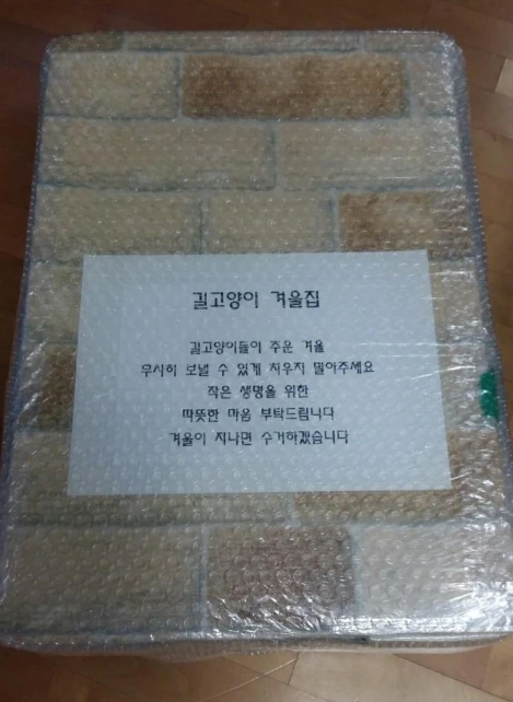 고양이 겨울집의 가장 좋은 재료는 역시 가볍고 따뜻하며 눈비에도 젖지 않는스티로폼 박스다. 그런데 박스를 구하려면 화요일 저녁에 분리수거장을 어슬렁거려야 했다.