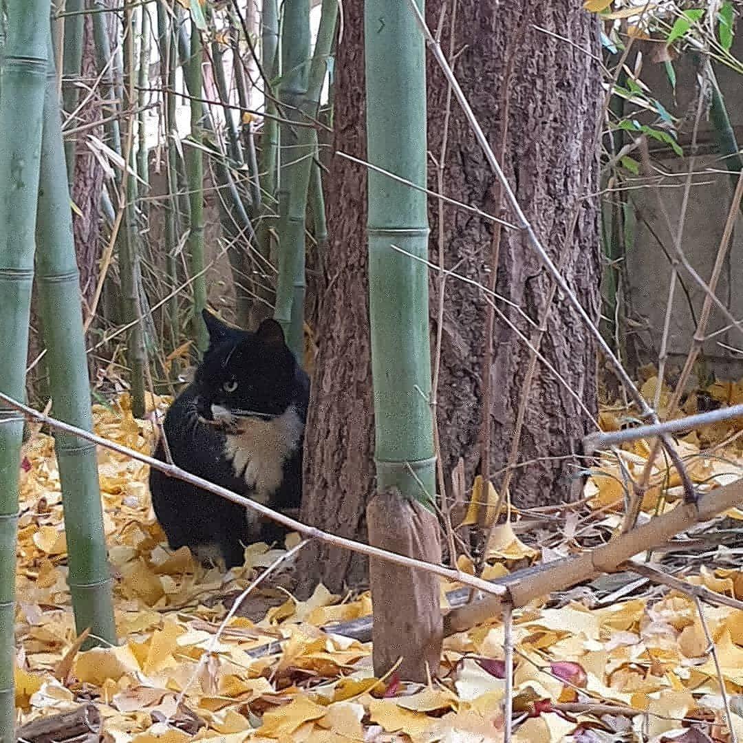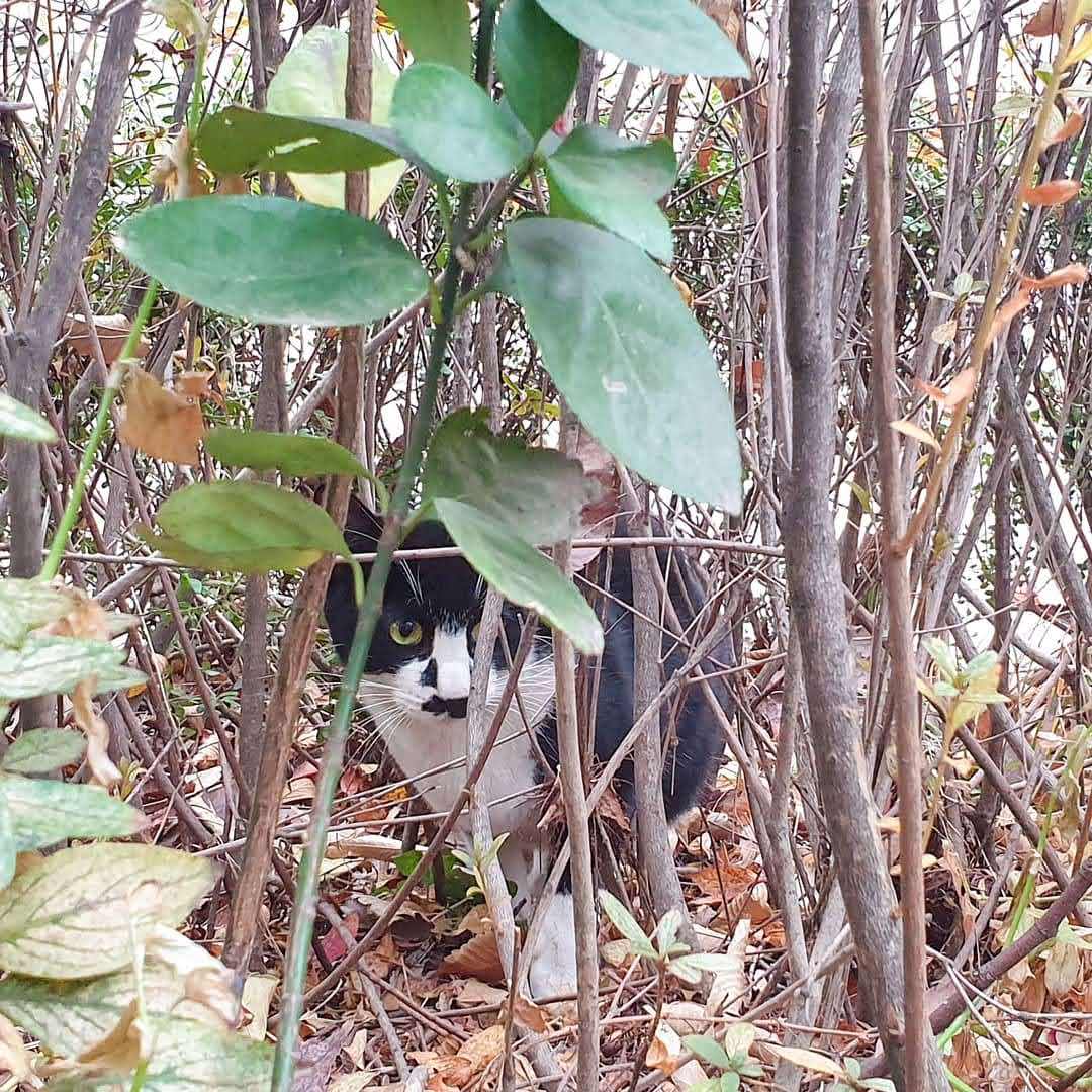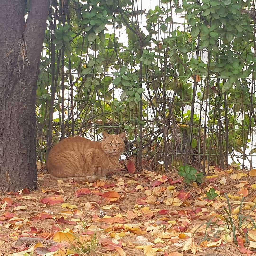 험악한 인상과 달리 천하의 쫄보 겁쟁이 치즈도 낙엽 속에 잘 숨었네.