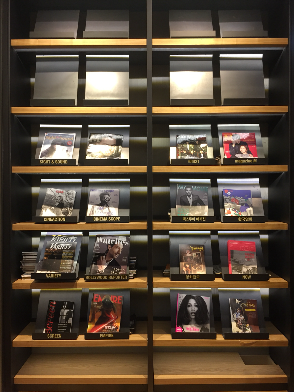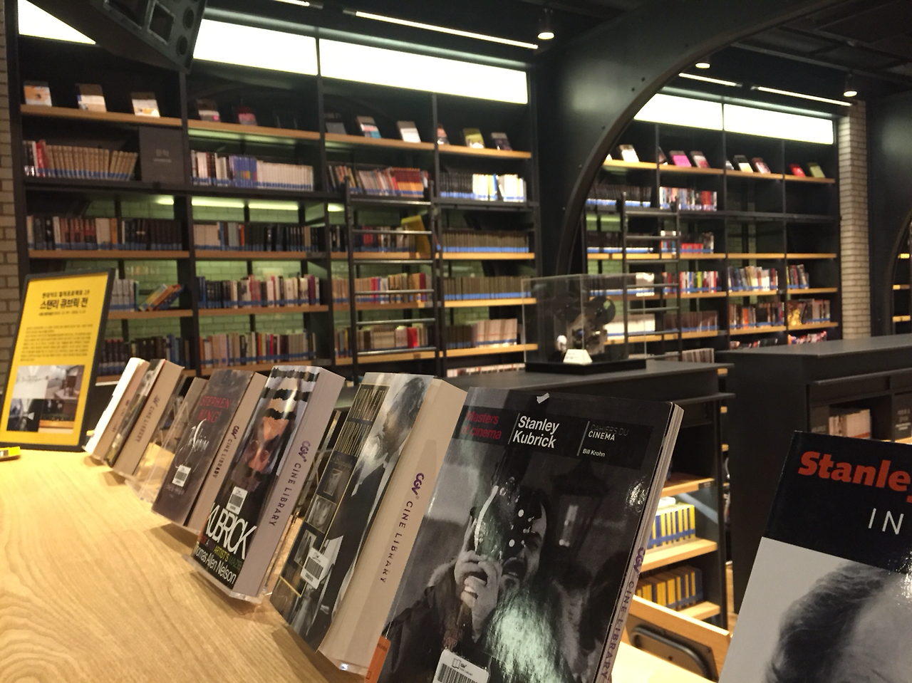 생각보다 방대한 양의 장서에 너무 놀랐고 영화에 관련한 다양한 분류의 서적들이 있어서, 영화학도들에게 정말 좋을 것 같다는 생각이 들었어요. 마침 전시중인 '스탠리 큐브릭 감독전'에 맞춰 아트하우스에서 영화상영과 도서전시를 해둔 것, 감독이 추천한 책과 소설이 원작인 영화와 연결한 코너는 씨네브러리만이 할 수 있는 콘텐츠같아서 더 좋았어요. 그 밖에도 영화와 관련된 매거진, 배우와 관련된 다양한 서적 등 해외원서도 많아서 영화산업에 종사하시는 분들이나, 영화공부를 하는 학생들에게 정말 유익할 것 같았어요.