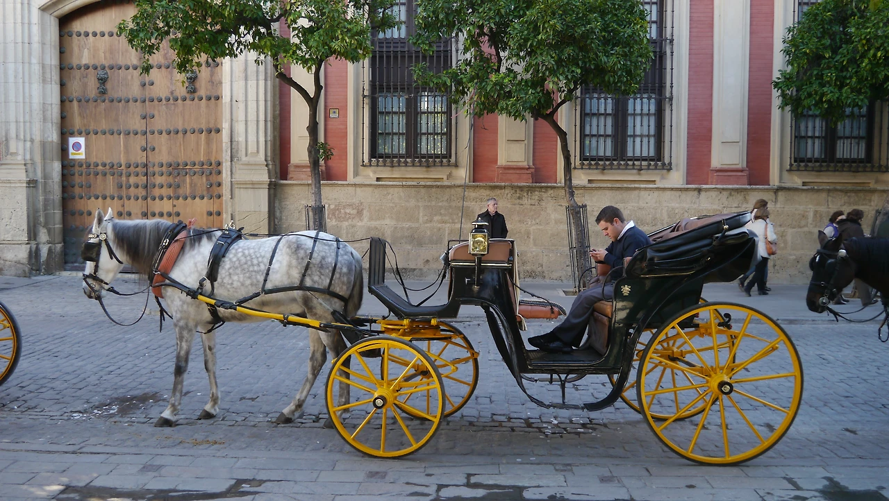 유럽에서의 여행이라면, 처음인 이곳, 새벽, 인적없는 이 밤에, 난 혼자서 그 미로같은 세비아 골목길을 거닐었다. 아무래도 동행이 생기면 보고싶은 것을 못보기에, 느긋하게 즐겨볼 심산이었다. 다행히 아무일 없이 두어시간을 거닐고, 공원에 앉아있으니, 슬슬 말발굽소리도 들려온다. 말똥 때문인지 물청소로 거리가 흥건하다.