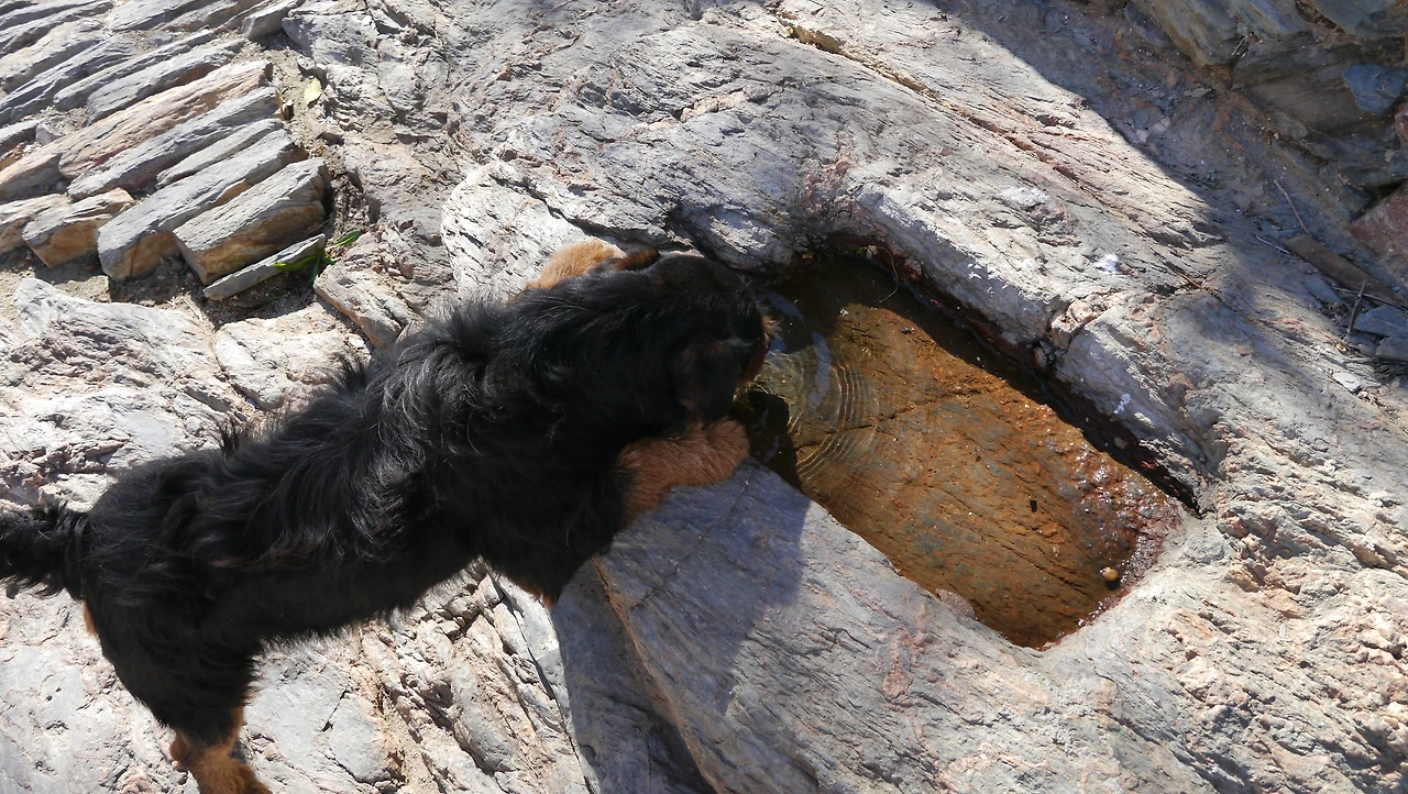 조사하면서 만났던 강아지는, 마을 입구로 들어서면 그사람을 졸졸 따라다니다가, 그 사람이 떠나면 마을 밖까지 마중을 나오고, 다른 손님을 또 받아서 들어오곤했다. 물먹는 모습이 귀여워, 아주머니께 말을 걸었다. '강아지 물그릇으로 만들었나봐요~', '네~ 앉아도 되요~'