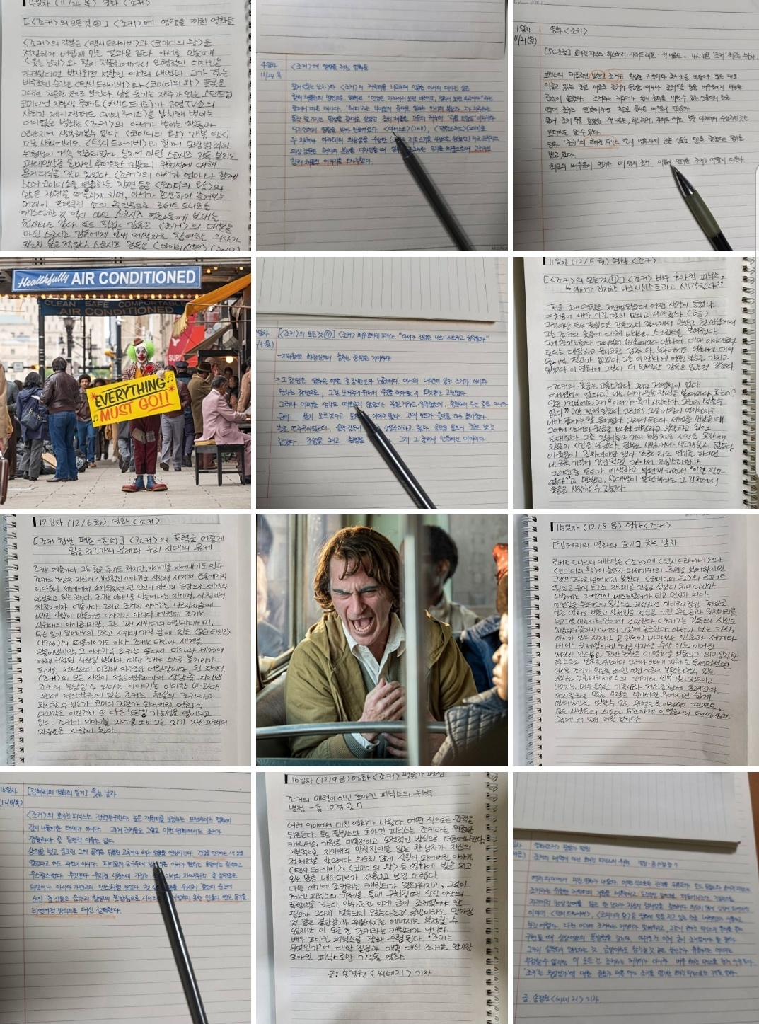 2022년 12월 영화 <조커> 리뷰를 읽고 필사한 노트 모습입니다. (샘들 수고하셨습니다.)