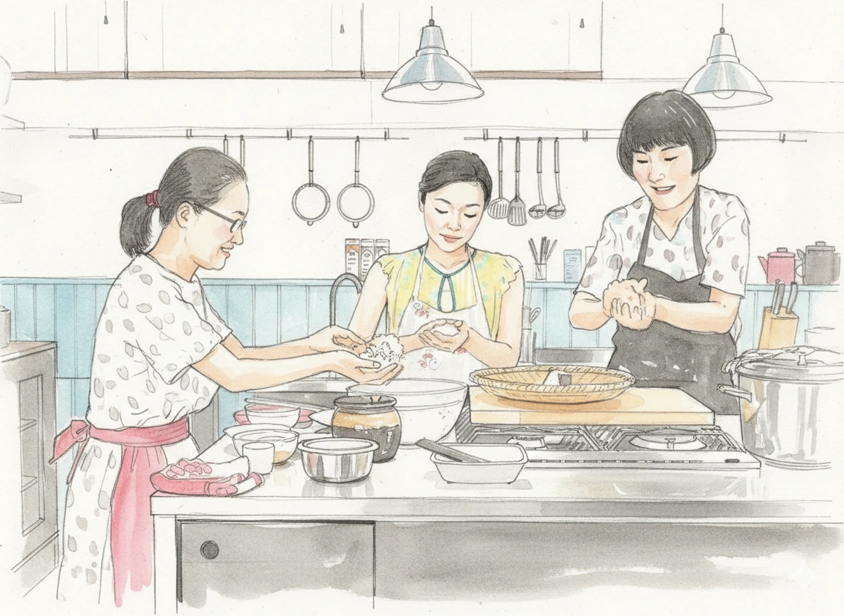 손으로 직접 쥔 따뜻한 밥 한 덩이,