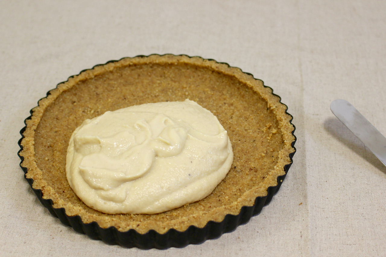 7. 굳힌 크러스트에 준비된 필링을 붓고 잘 펴준다.
