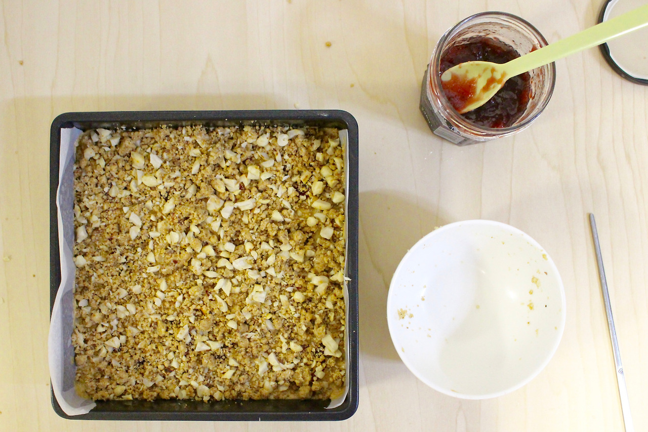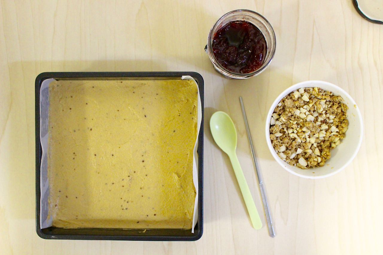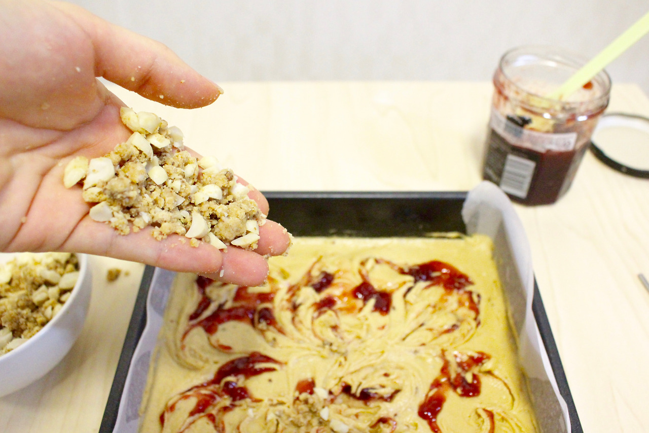 12. 만들어둔 크럼블을 반죽 위해 흩뿌려준다.