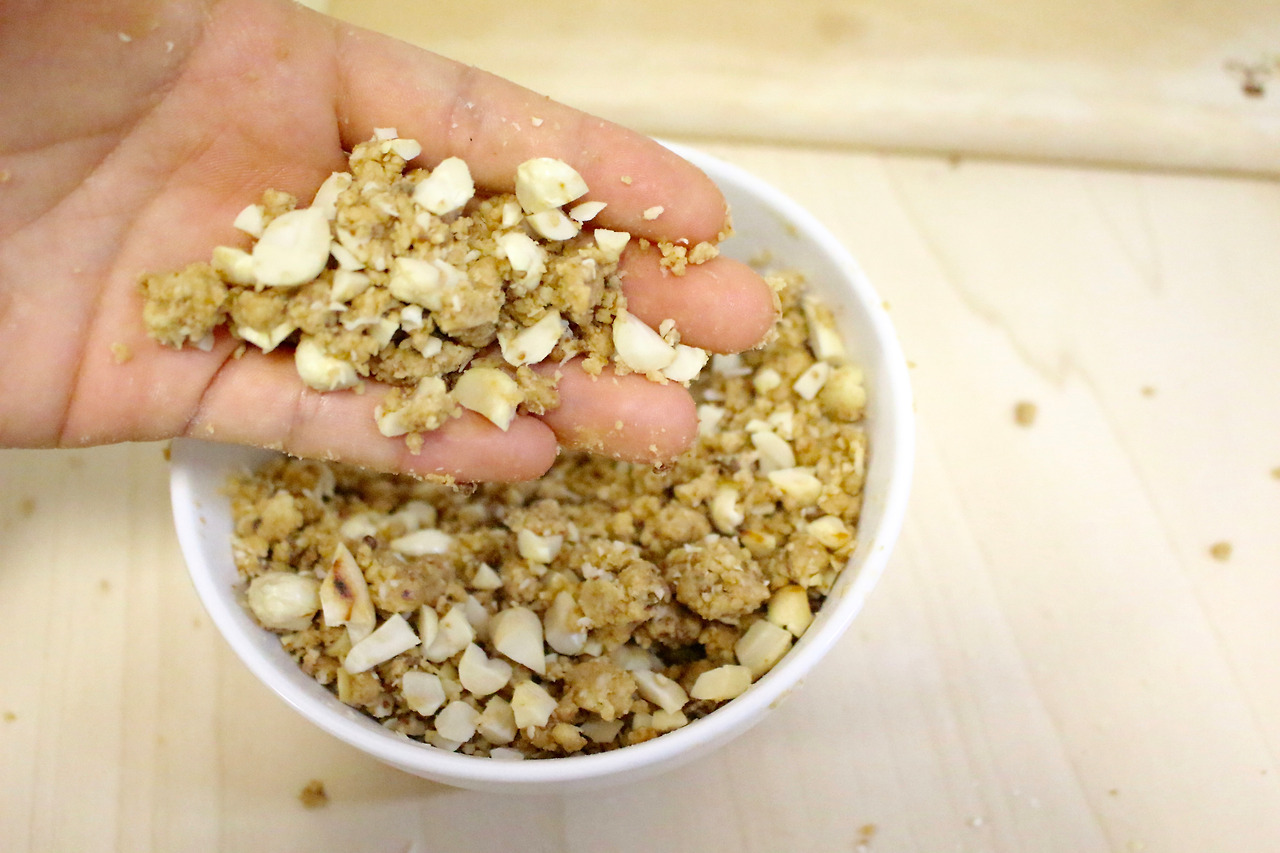5. 3이 크럼블 형태가 되면 썬 땅콩을 넣고 섞어준 뒤, 냉장고에 보관한다.