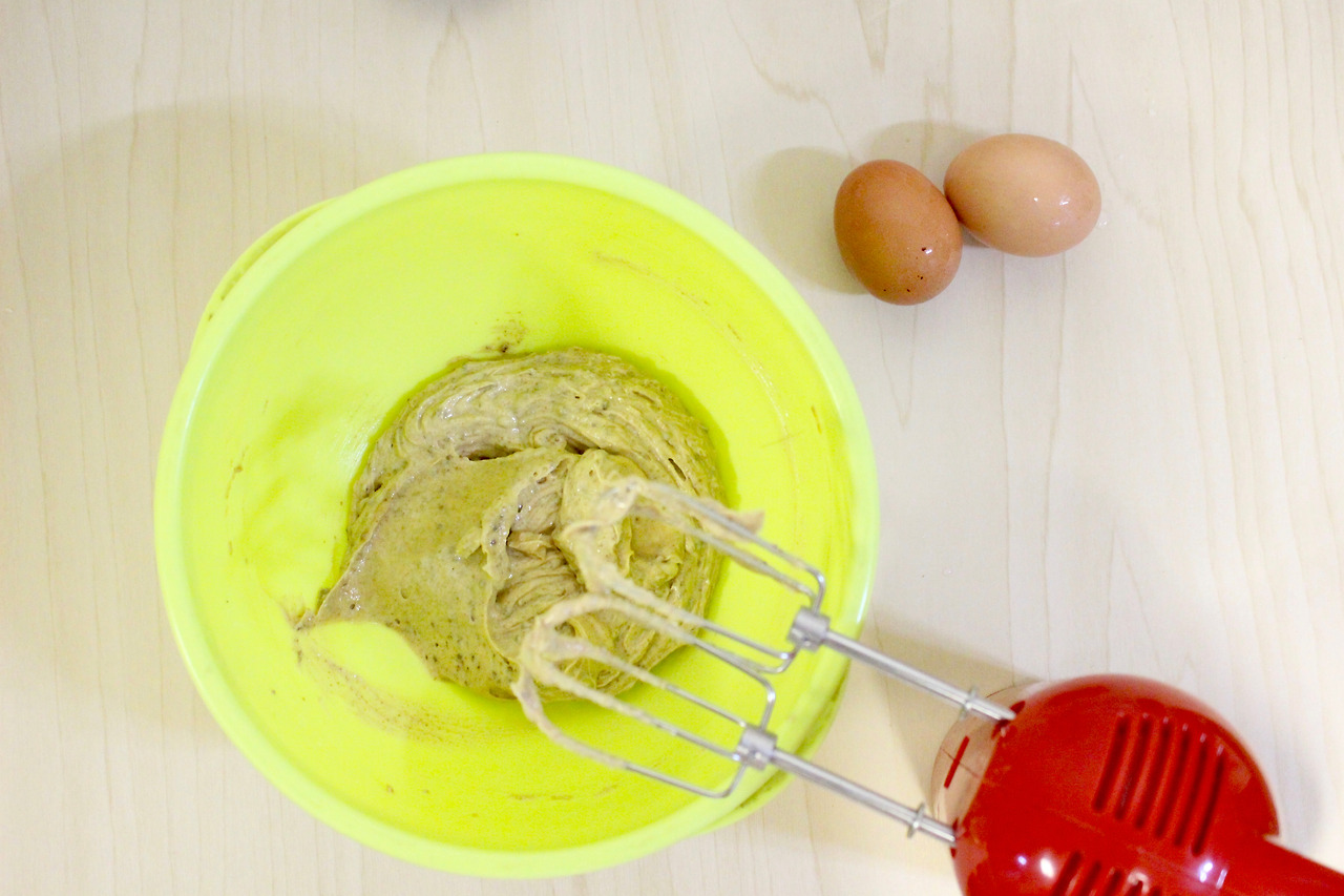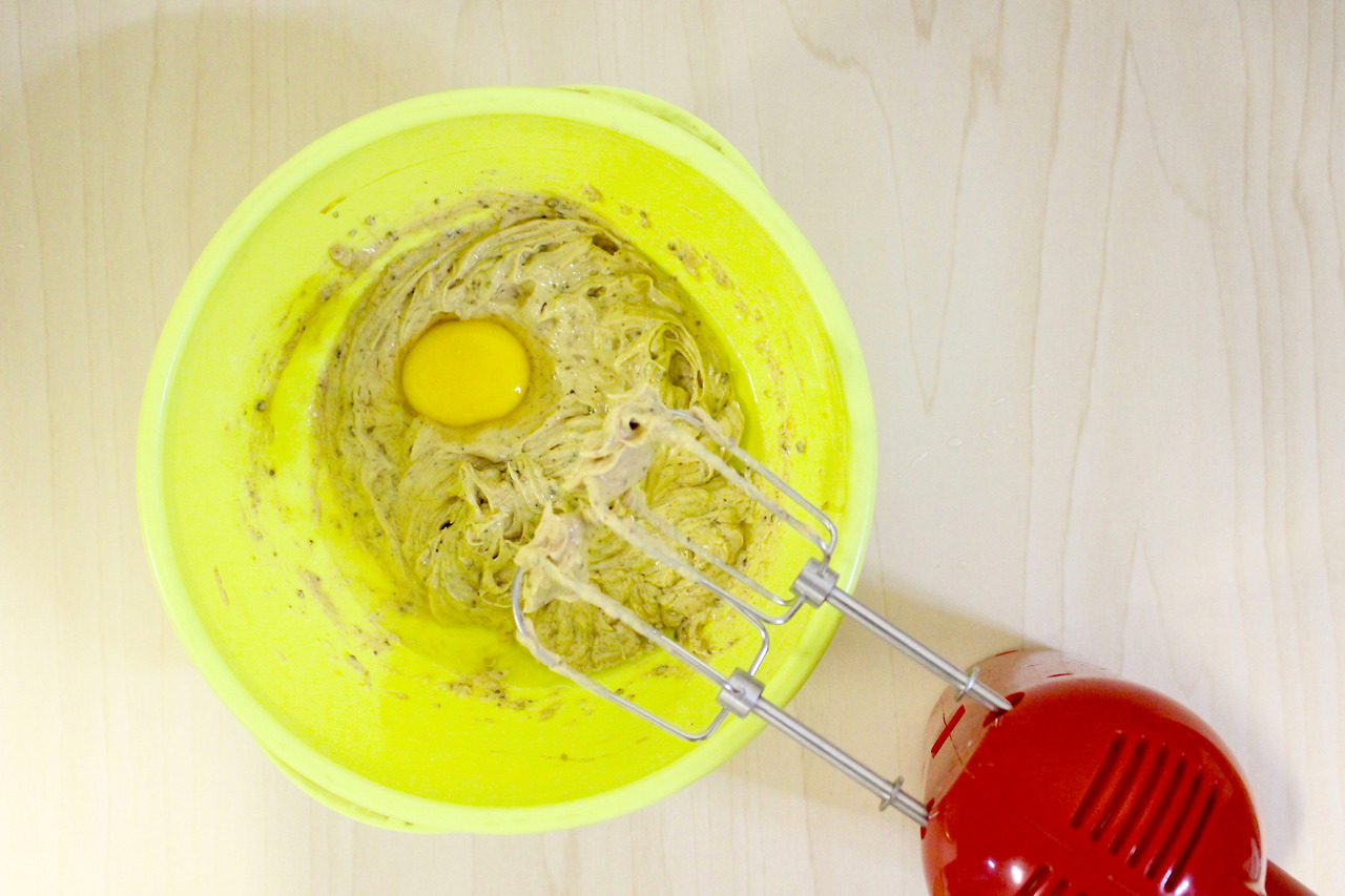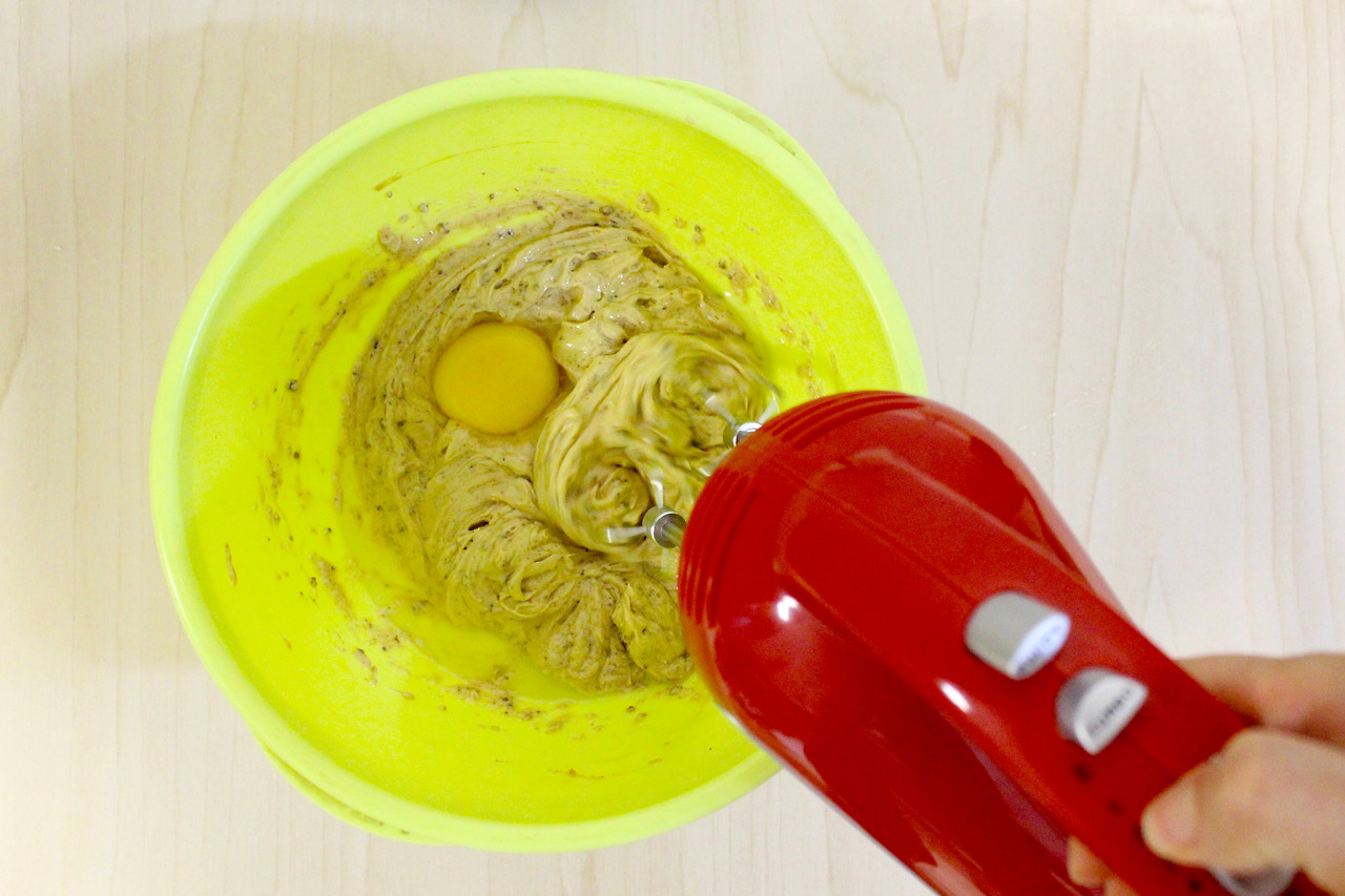 7. 버터 혼합물이 부드럽게 섞이면 실온 상태의 계란을 1개씩 넣고 잘 섞는다.