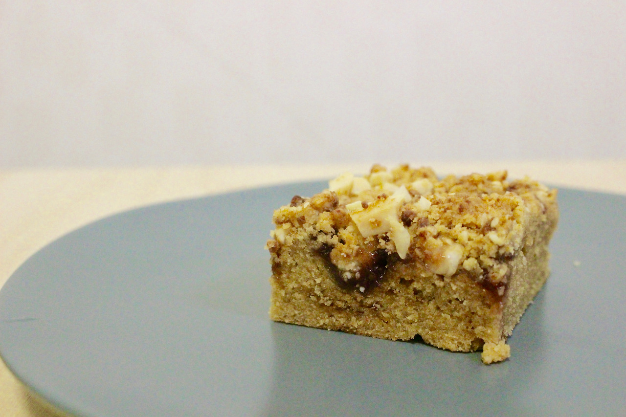 이후, 이 조합을 영어로 피넛버터 앤 젤리 (Peanutbutter&Jelly;PB&J)라고 한다는 것을 알게 되었다. 짭쪼름한 땅콩버터와 달콤한 잼이 만나 최고의 맛을 낸다. 요즘 한국에서도 많이 쓰이는 말인 단짠의 일종이라고 볼 수 있다. 이 PB&J 는 북미 지역에서 아주 인기 있는 맛이다. 뿐만 아니라 다른 나라에서도 흔하게 먹는듯하다. 영국 유투버인 cupcakejemma나 다른 유투버들 또한 PB&J를 무척이나 좋아하는 것을 보면 말이다. 나는 토스트 이외에도 땅콩버터와 딸기잼을 사용해 컵케이크를 자주 만들곤 했는데, 프로스팅이 귀찮을 때면 크럼블을 얹어 바 형태(브라우니처럼 납작한)로 만든다. 땅콩버터 향이 가득한 부드러운 케이크 위에 달콤한 딸기잼을 얹고 마지막으로 땅콩을 듬뿍 넣은 크럼블을 뿌려주면 완성이다. 포슬한 식감의 PB&J 크럼블 바는 우유 혹은 커피와 함께 먹으면 아주 좋다. 부드러운 케이크 한 입이 들어가기가 무섭게 또다시 포크질을 하게하는 멈출 수 없는 맛이었다. :)