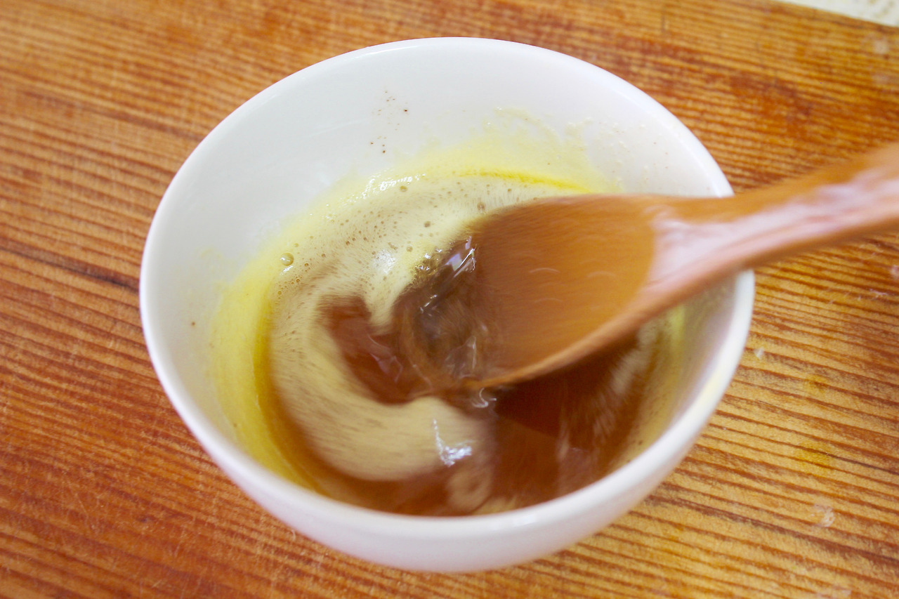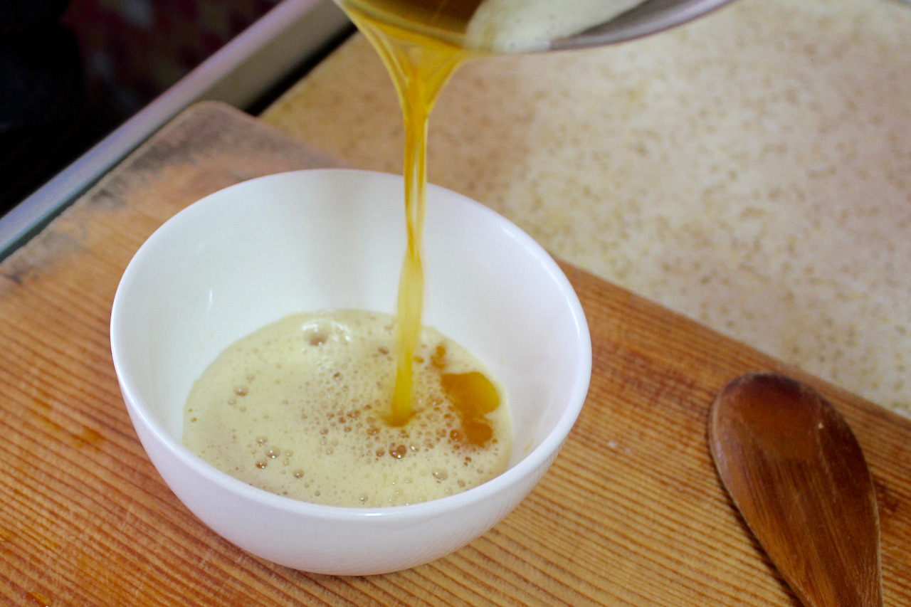 2. 갈색 점 같은 침전물이 생기고 색이 호박색(갈색) 정도로 변하면 다른 그릇에 옮겨 담는다.