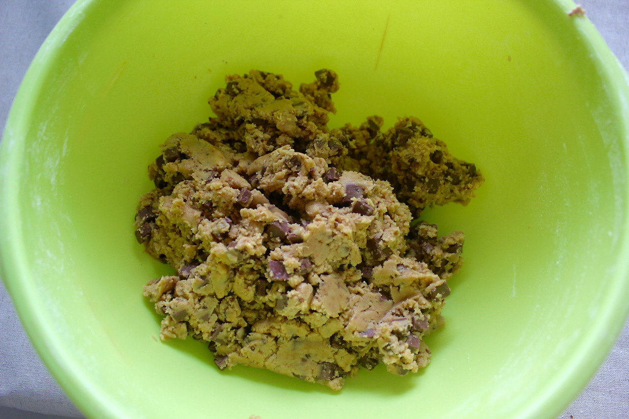 7. 준비해둔 가루류를 넣고 스패츌라를 사용해 접어올리듯 섞는다. 쿠키는 너무 많이 반죽하면 다소 tough 한 쿠키가 나올 수 있으니 주의한다.