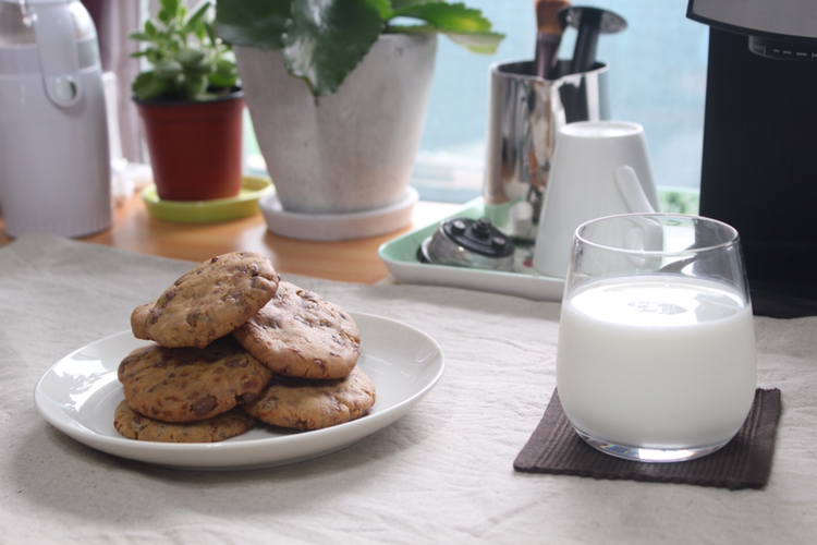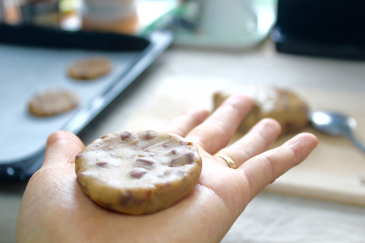 베이킹을 해보기로 결심한 후 가장 처음으로 도전한 것은 초코칩 쿠키였다. 크기부터 다른 케이크나 머핀 등에 비해 월등히 작고 왠지 섬세한 작업 따위는 필요치 않아 보이는 쿠키는 내게 가장 만만했던 대상이었고 나의 첫 타깃은 자연스레 쿠키가 되었다. 의욕에 불타며 마트로 달려간 내 장바구니에는 초코칩 쿠키믹스를 시작으로 버터, 우유, 계란이 줄지어 들어섰고 나의 에스코트를 받으며 우리 집 식탁에 무사히 도달했다. 먼저 포장박스에 적힌 설명서를 읽었고 분주하게 쿠키를 만들기 시작했다. 만드는 과정은 순조로웠고 쿠키 도우는 나란히 줄지어 오븐 안으로 들어갔다. 이윽고 온 집안이 달콤한 향기로 가득 찼다. 방에 있던 플랫 메이트까지 거실로 나와 코를 킁킁대며 기대에 찬 눈빛을 보냈다.
