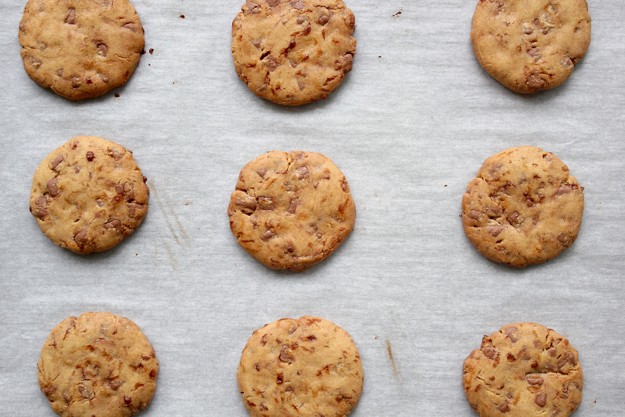 나는 쿠키 중에서도 바삭하고 진한 맛의 초코칩 쿠키를 가장 좋아한다. 이 진한 맛을 내기 위해 그냥 버터가 아닌 브라운 버터를 사용했다. 여기서 말하는 브라운 버터는 버터를 말 그대로 갈색이 될 때까지 가열한 것이다. 버터는 100% 지방으로 이루어진 것이 아니다. 지방과 15%정도의 물, 2%정도의 단백질로 이루어져 있다. 버터를 가열하면 물이 증발하여 거품이 나게 되며 단백질 성분들이 갈색으로 변하게 된다. 버터를 계속해서 가열하게 되면 단백질이 잡다한 분자 상태로 부서지게 되며 갈색 점 같은 유고형분(milk solid)이 생겨난다. 이 적당한 호박색(갈색)을 띤 상태가 되면 버터가 nutty 하고 toasty 한 맛을 낸다. 프랑스인들은 이 복합적인 맛을 헤이즐넛의 맛이라고 생각해 프랑스어로 "beurre noisette" 즉 헤이즐넛 버터라고 부른다. 이 브라운 버터는 다양한 요리에 사용되는데 나는 이를 사용해 더 깊은 풍미의 초코칩 쿠키를 만들었다. 또한 브라운 버터 이외에도 비정제당을 사용해 카라멜향이 감도는 쿠키를 만들 수 있었다.